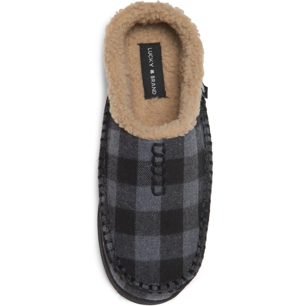 Lucky Brand Boys Buffalo Plaid Memory Foam Clog Slippers, Non Slip Rubber Sole House Shoes, Kids Cozy Fluffy Bedroom Clogs(Grey)