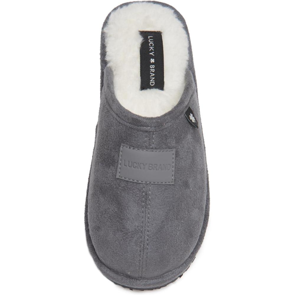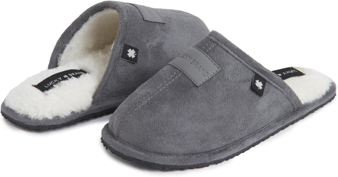 Lucky Brand Boy’s Micro-Suede Scuff Slippers, Kids House Shoes with Plush Lining(Grey)