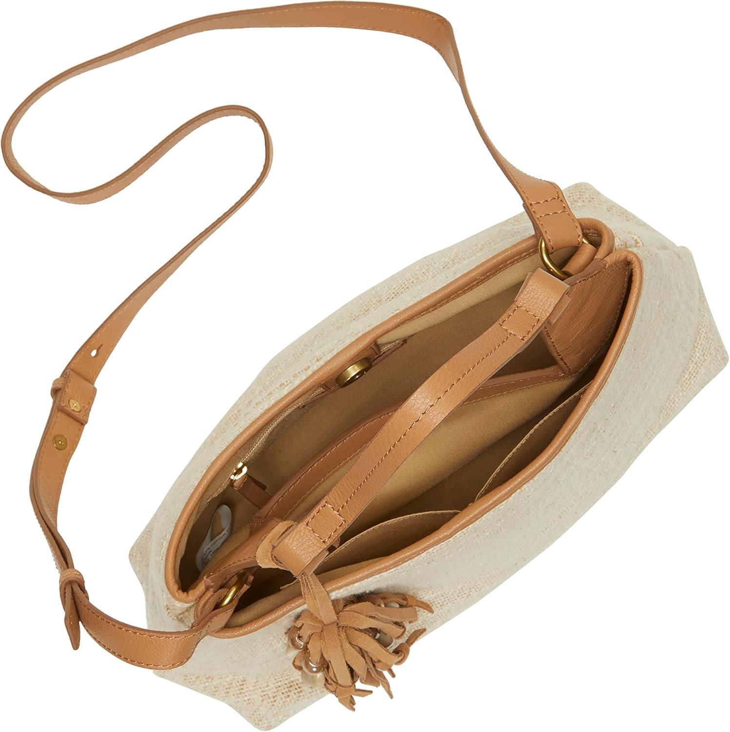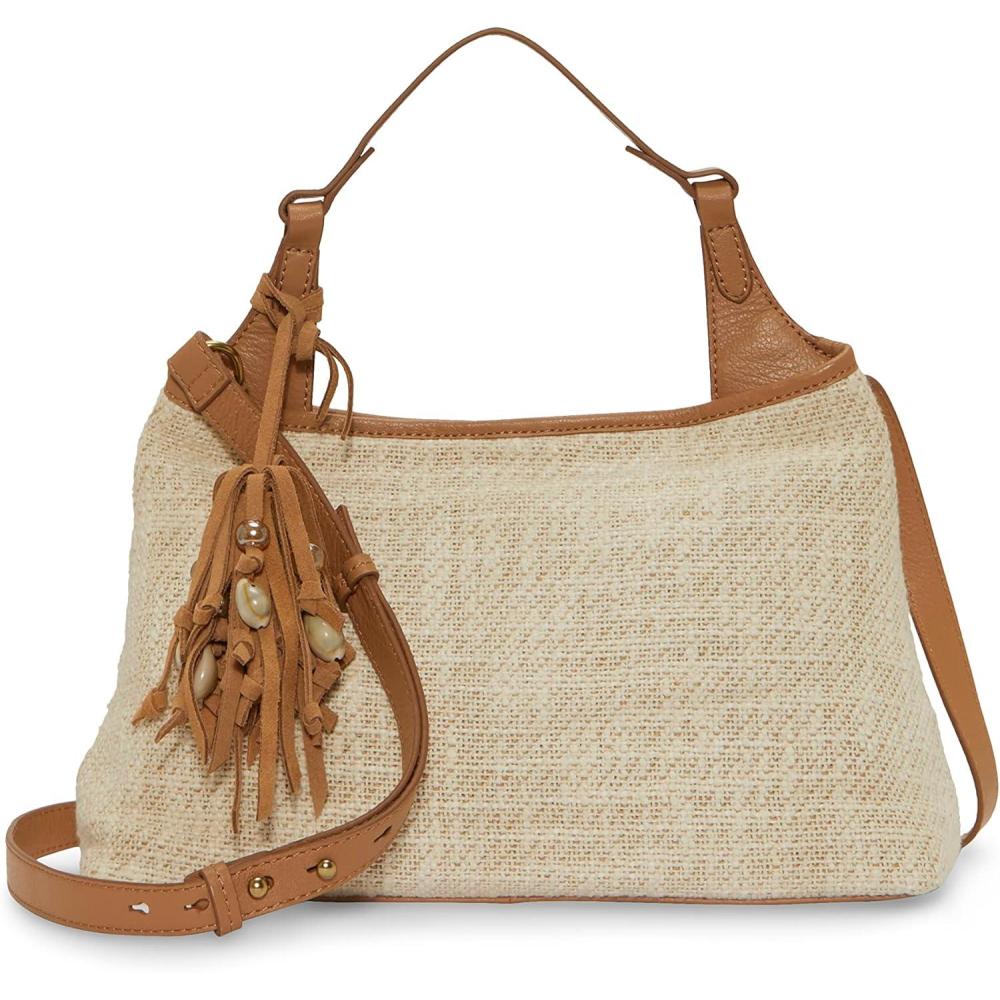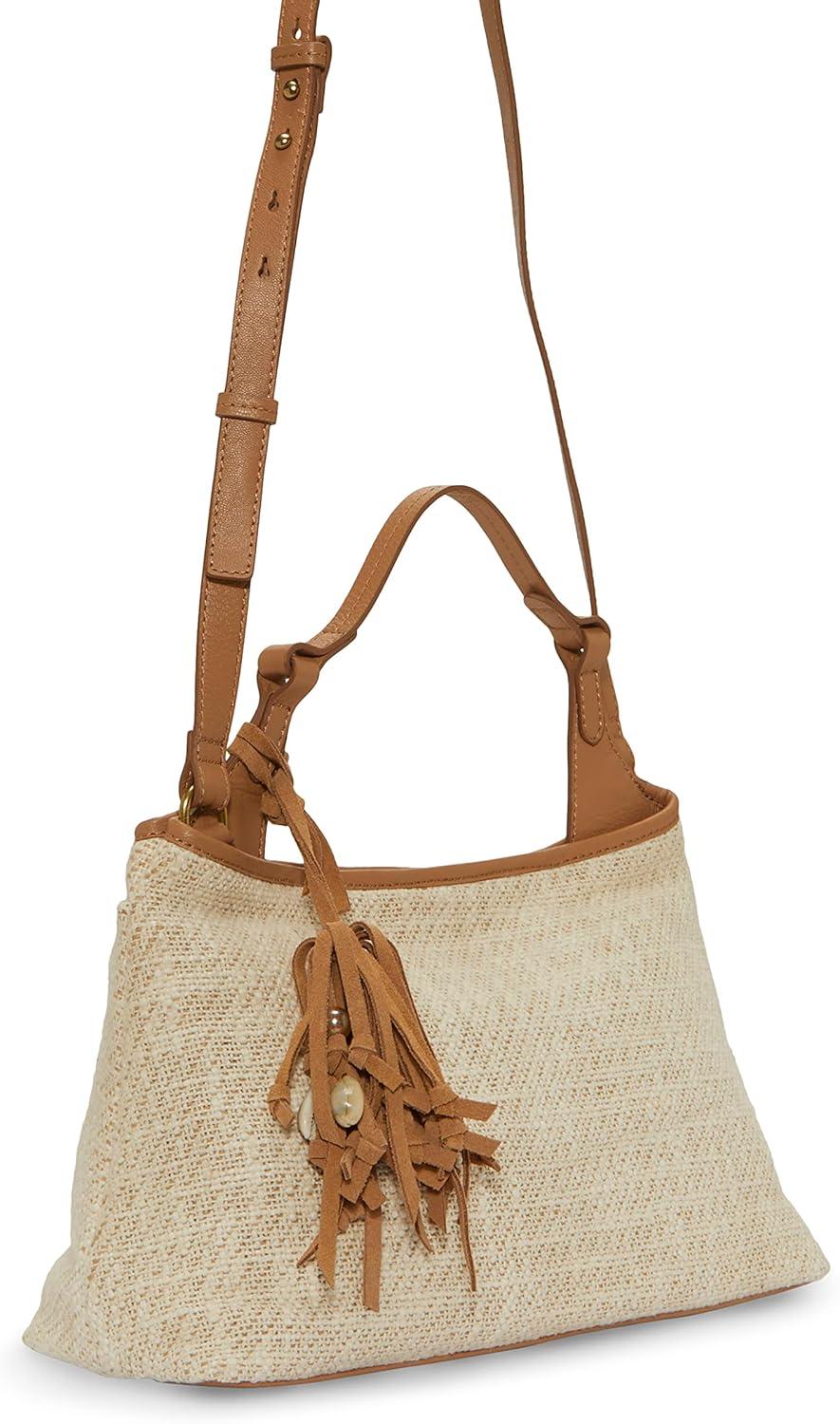 The Holi satchel by Lucky Brand is as functional as is it fashionable. Woven detail with leather and beaded dangle and also has a crossbody strap. The interior has plenty of pockets to keep you organized.