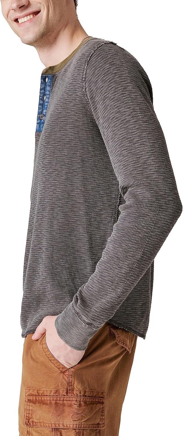 Lucky Brand Men’s Acid Wash Thermal Henley W/Contrast Placket(Grey Multi)