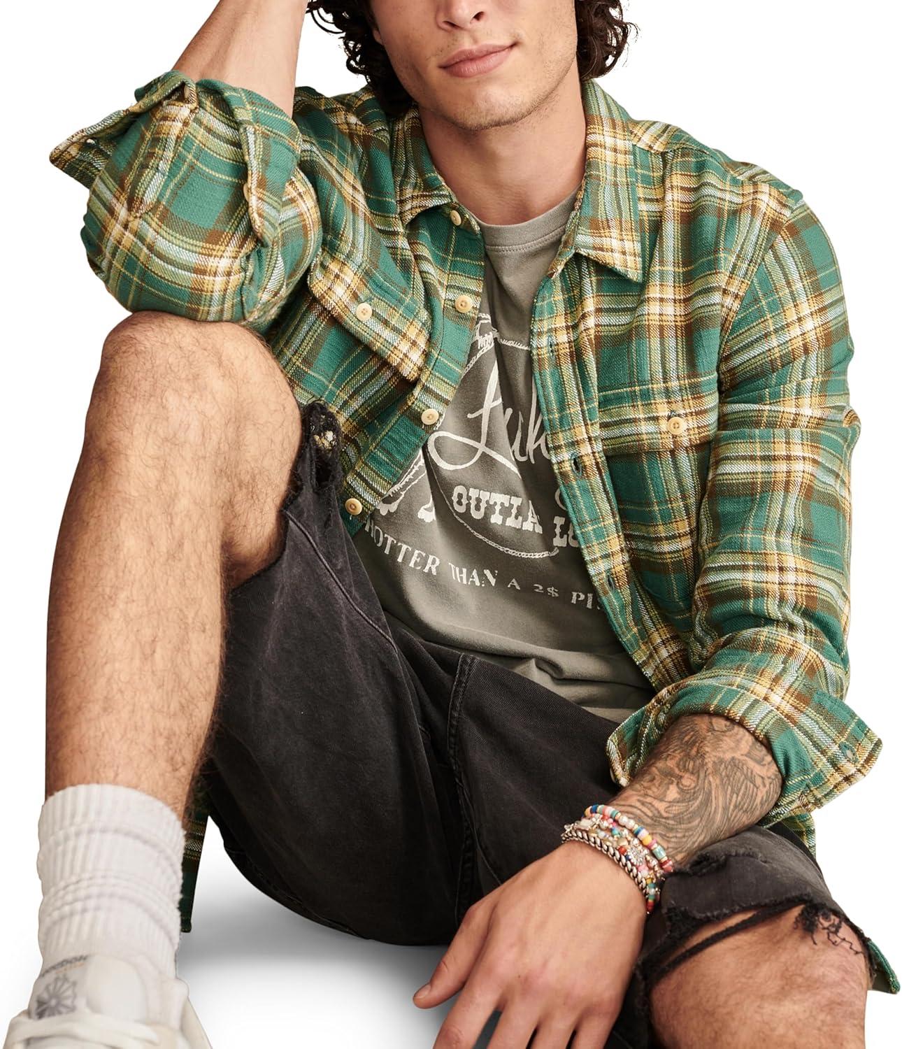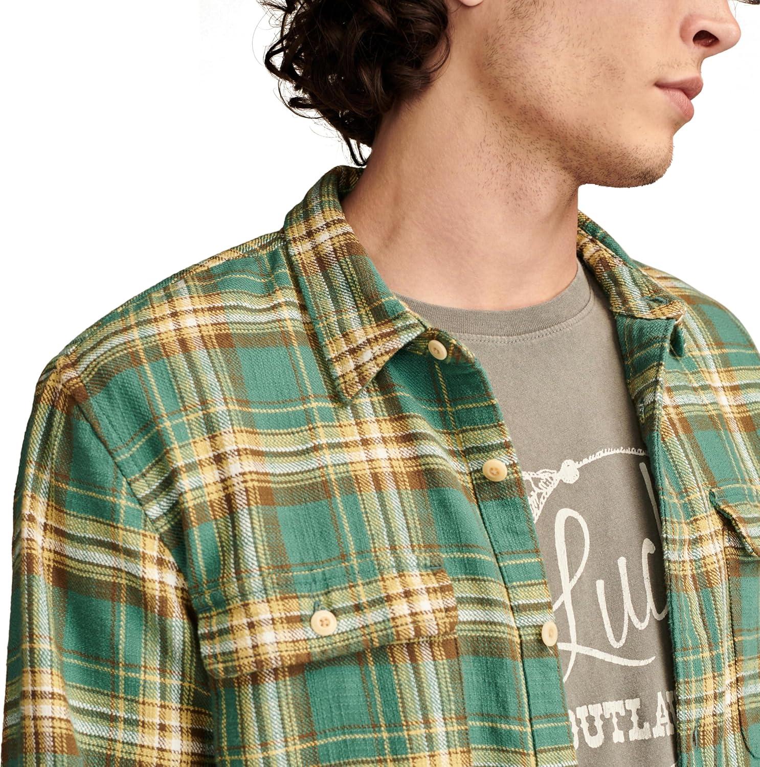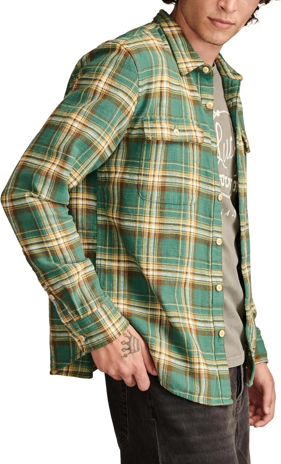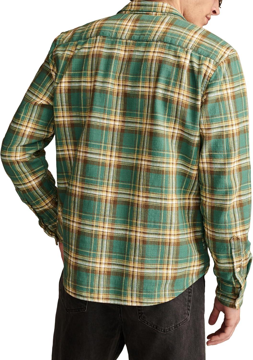Lucky Brand Men’s Big Slub Twill Plaid Long Sleeve Utility Shirt(Green Multi)