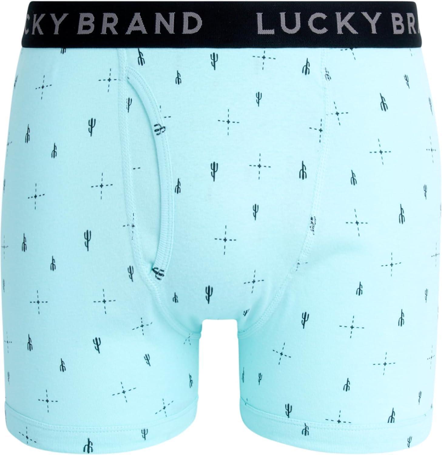 Lucky Brand Mens Boxer Briefs – 6 Pack Classic Mens Underwear Boxer Briefs with Functional Fly – Soft Cotton Boxers for Men(Jet Black/Black/Jet Black Print)
