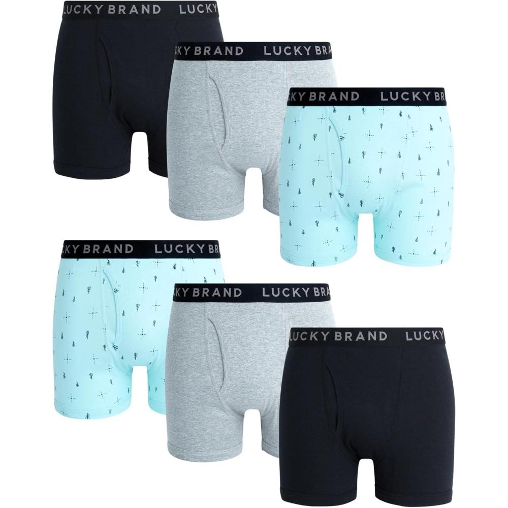 Lucky Brand Mens Boxer Briefs - 6 Pack Classic Mens Underwear Boxer Briefs with Functional Fly - Soft Cotton Boxers for Men(Black/Green/Light Grey Heather)