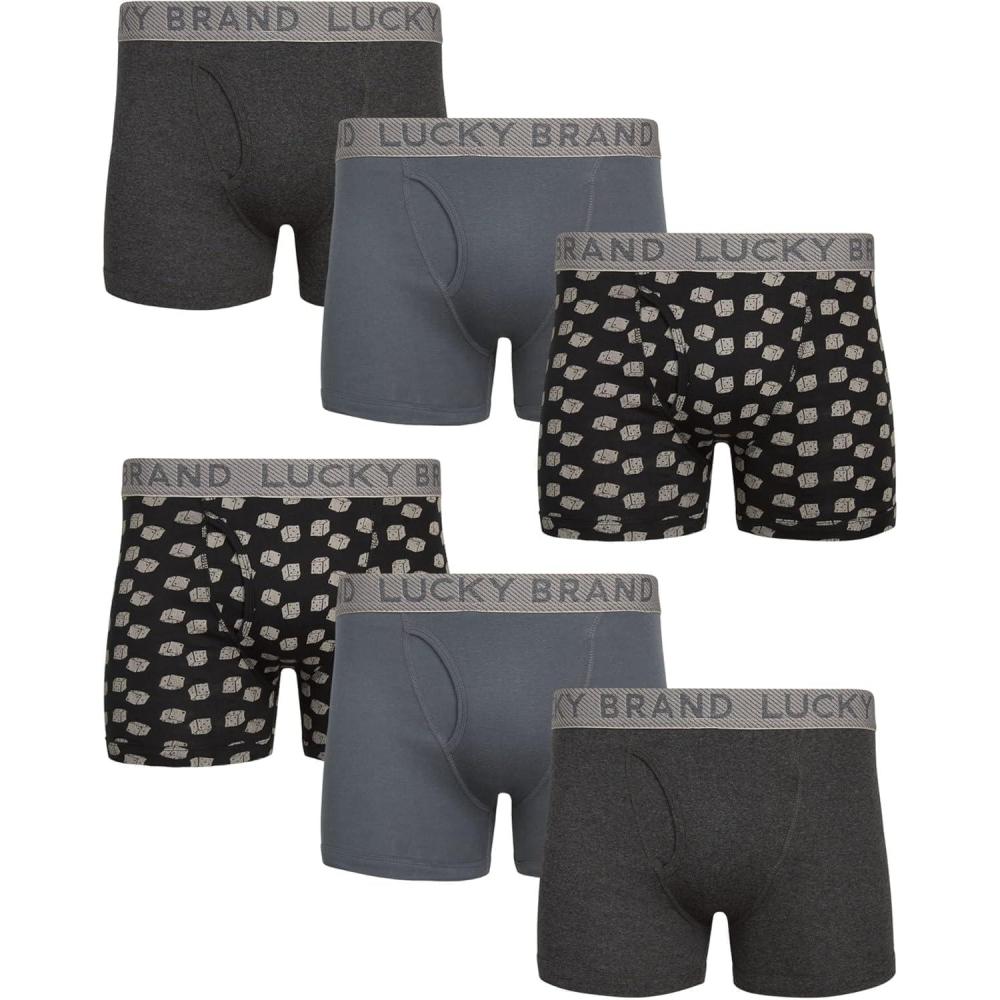 Lucky Brand Mens Boxer Briefs – 6 Pack Classic Mens Underwear Boxer Briefs with Functional Fly – Soft Cotton Boxers for Men(Blue Heather/Print/Charcoal)