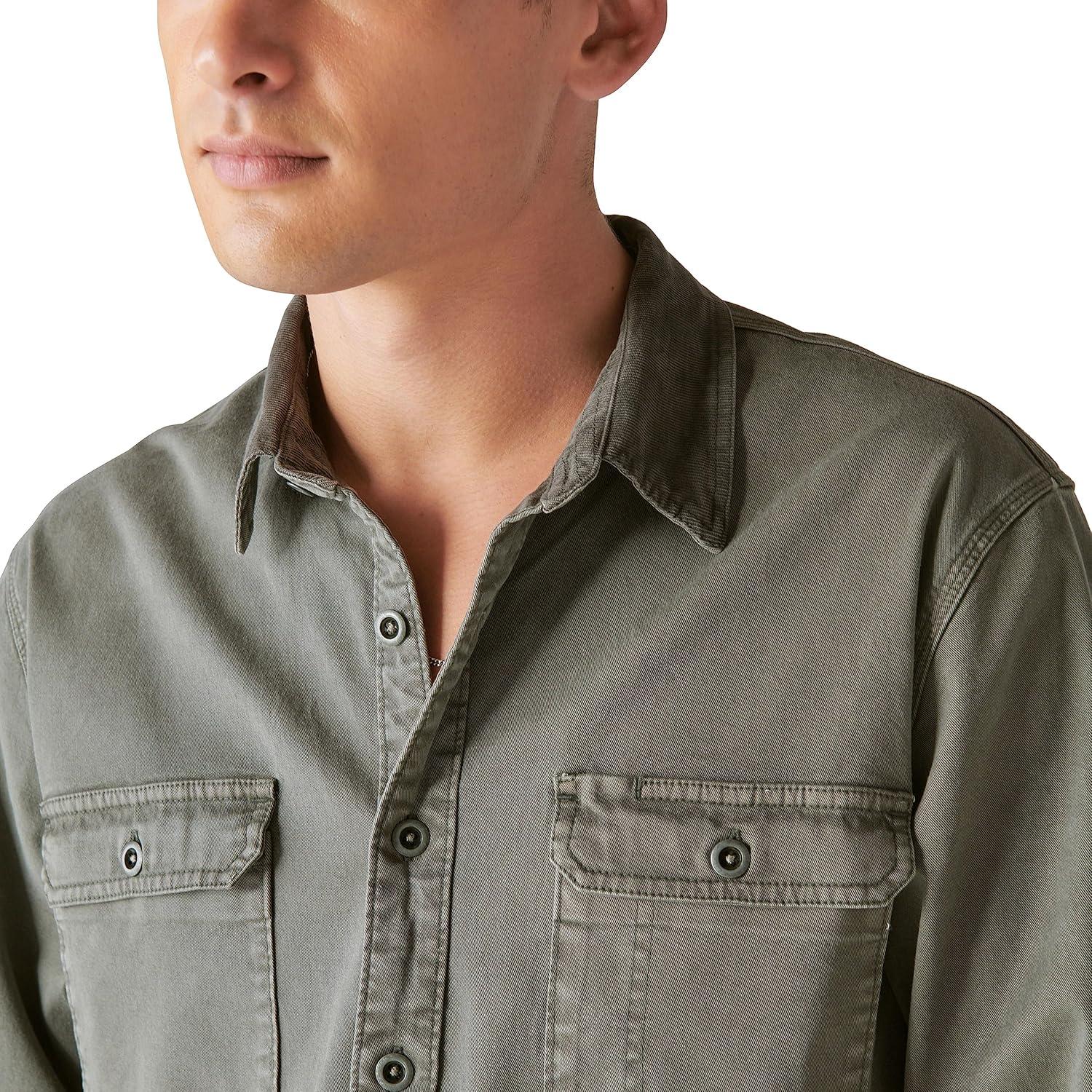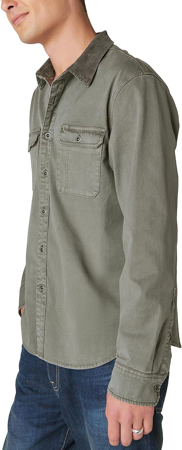 Lucky Brand Men's Corduroy Collar Washed Long Sleeve Shirt(Castor Gray)
