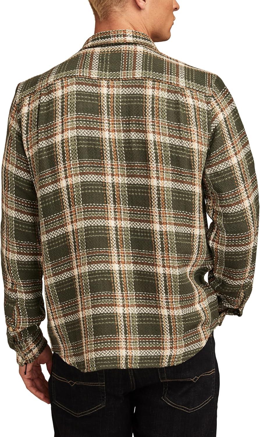Lucky Brand Men’s Big Slub Twill Plaid Long Sleeve Utility Shirt(Black Multi)