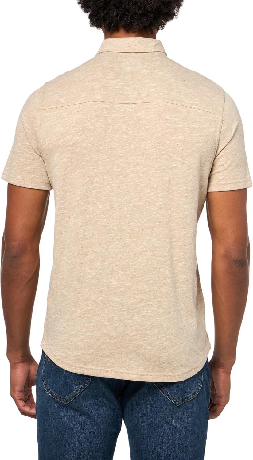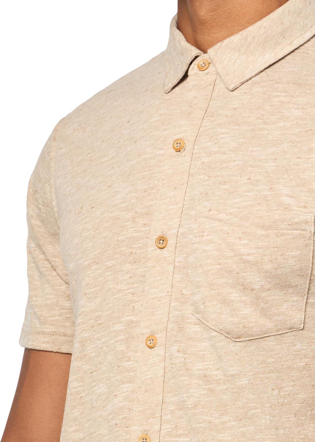 Lucky Brand Men’s Linen Short Sleeve Button Up Shirt(Plaza Taupe)