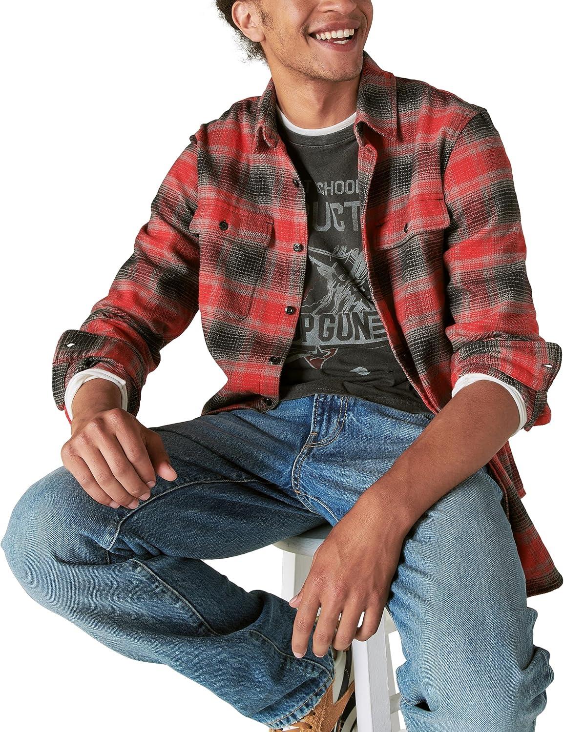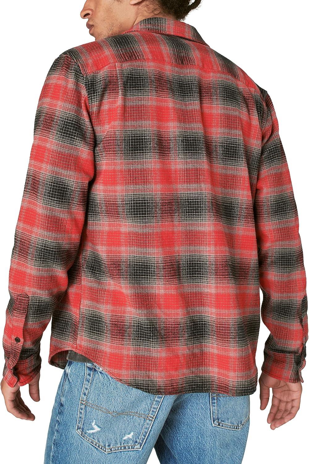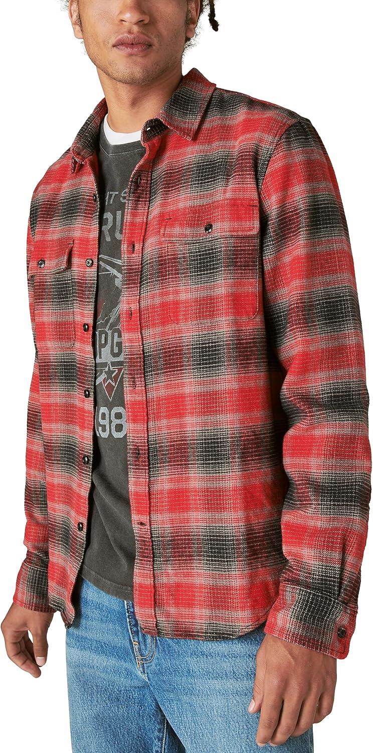 Lucky Brand Men’s Plaid Cloud Soft Long Sleeve Flannel(Red Charcoal)