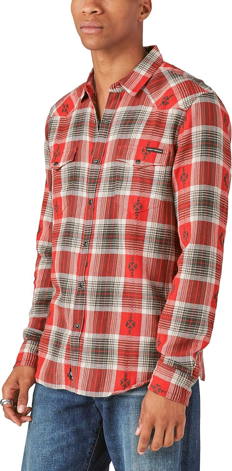 Lucky Brand Men’s Plaid Indigo Long Sleeve Workwear Shirt(Red Plaid)