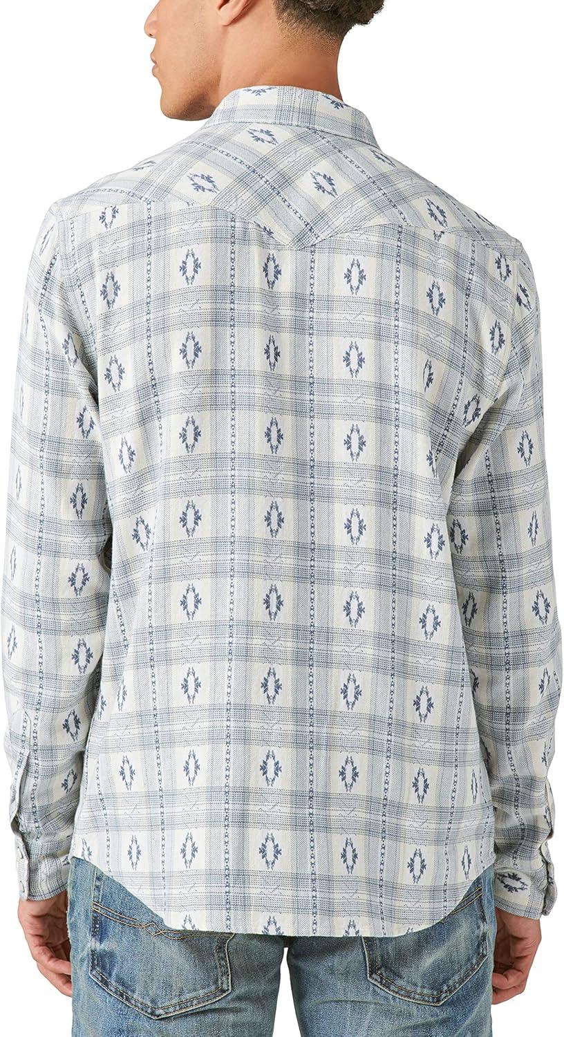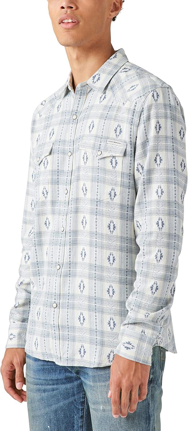 Lucky Brand Men’s Plaid Indigo Long Sleeve Workwear Shirt(White / Blue Combo)