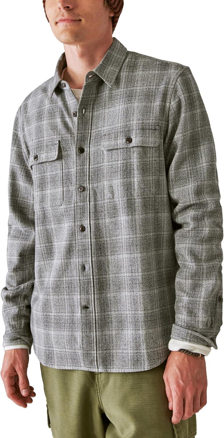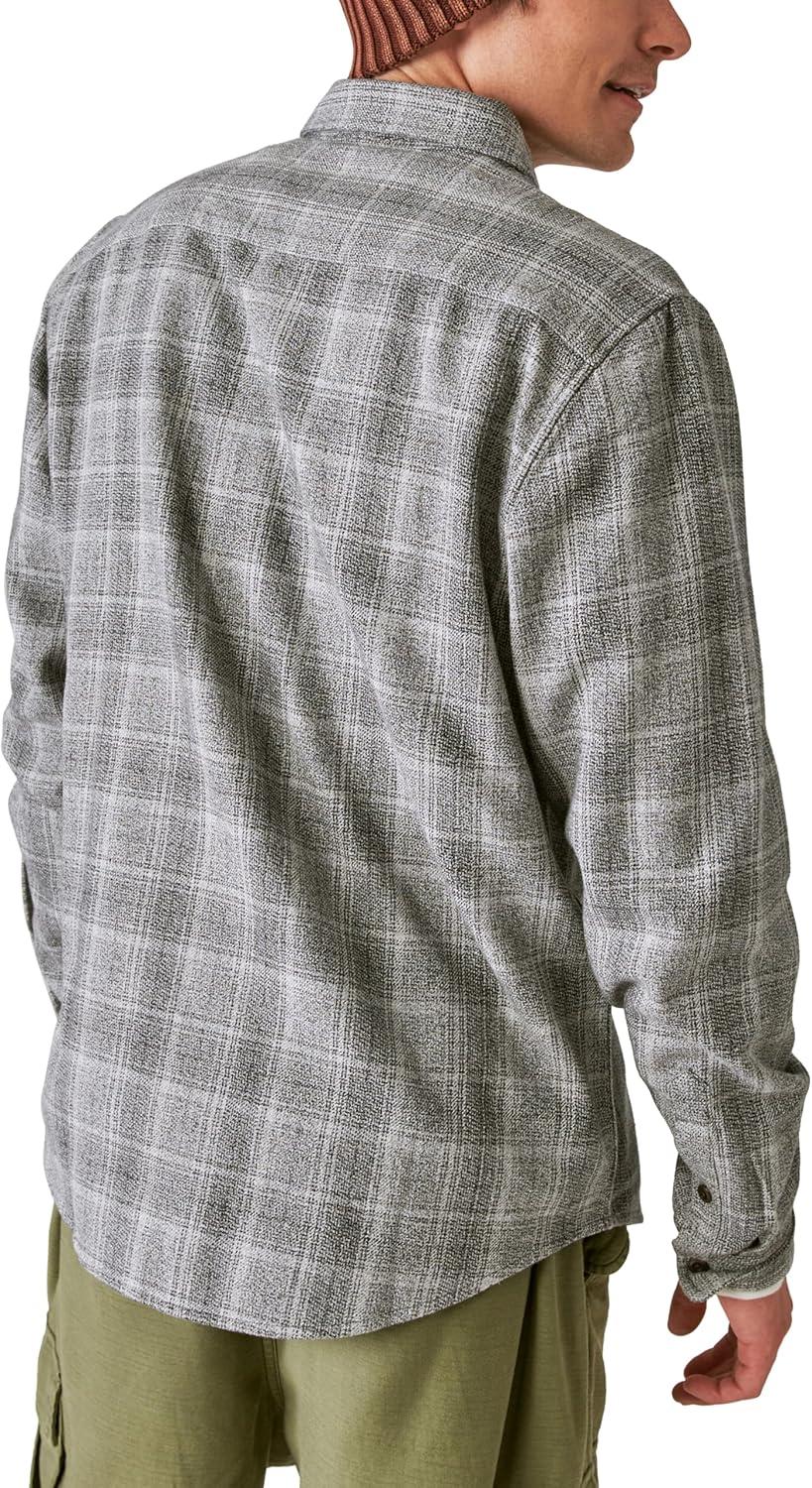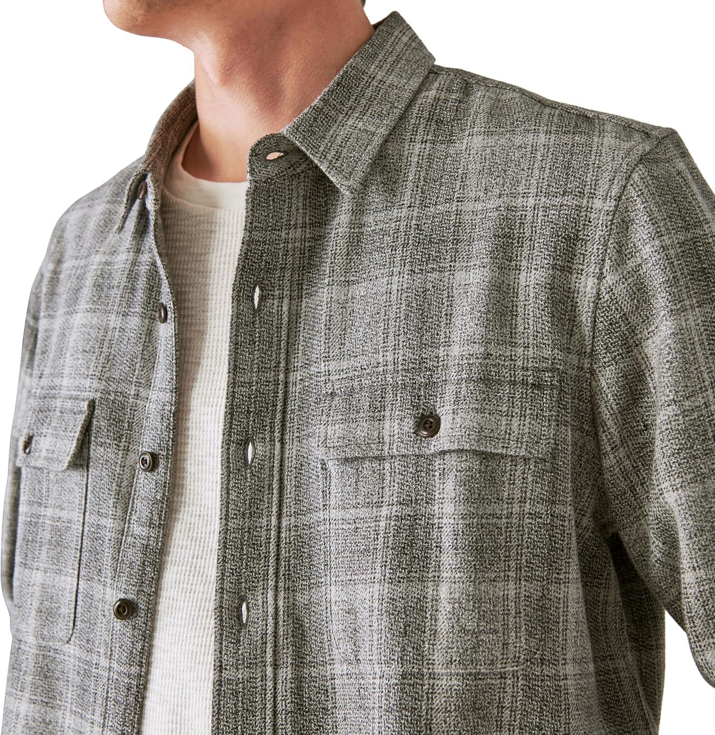 Lucky Brand Men’s Plaid Utility Long Sleeve Flannel Shirt(Grey Malange)