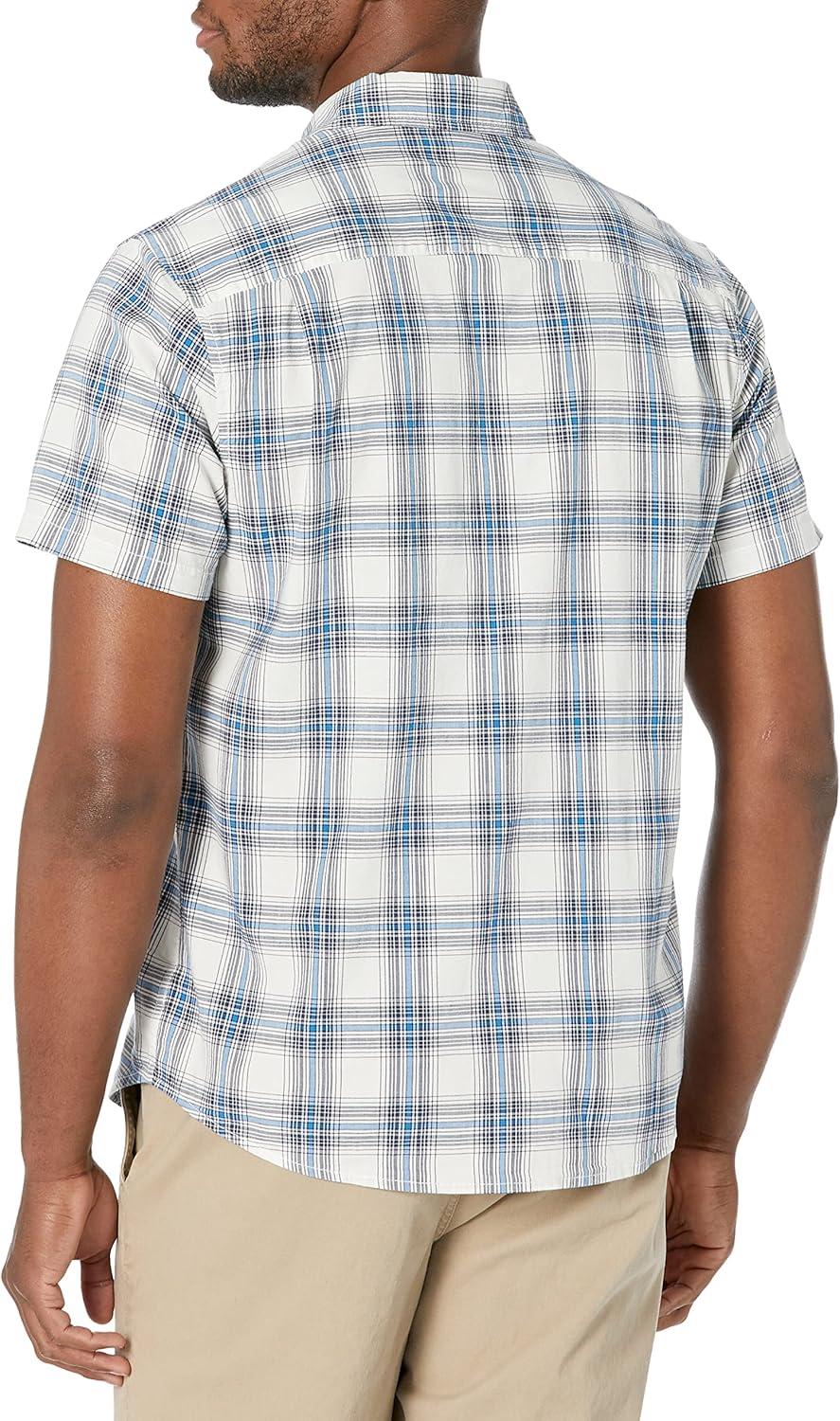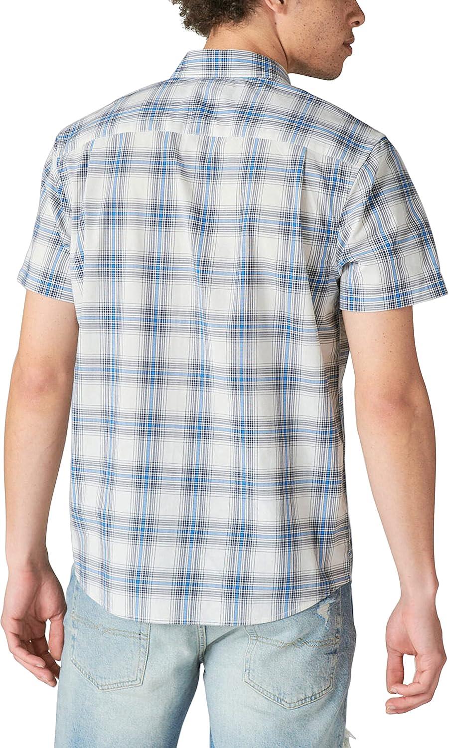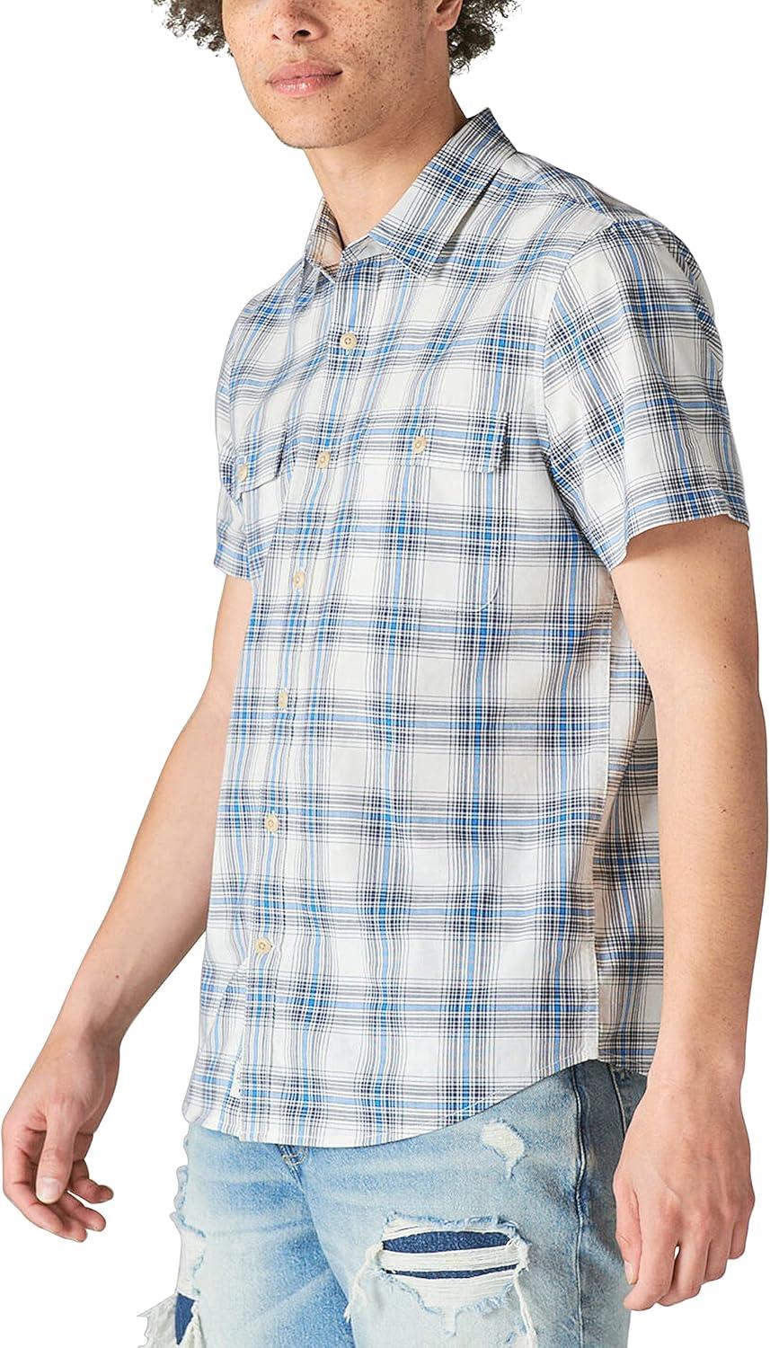 Lucky Brand Men’s Plaid Workwear Short Sleeve Shirt(White/Navy)