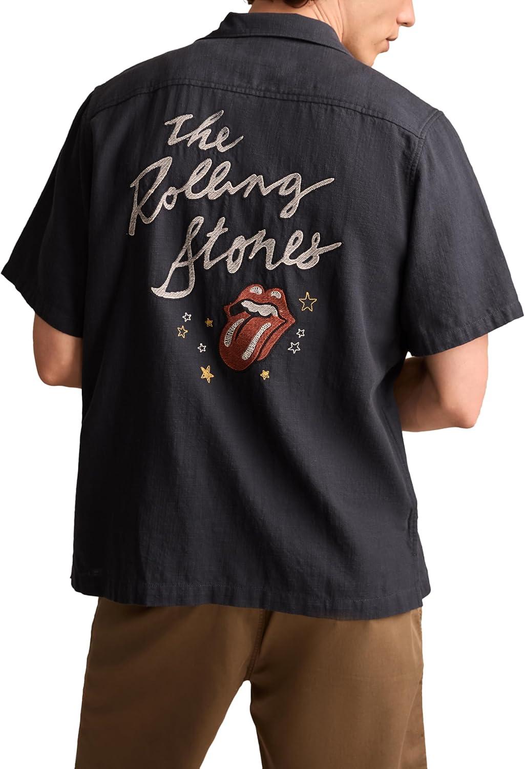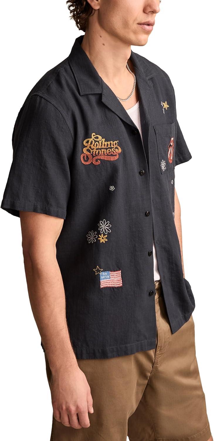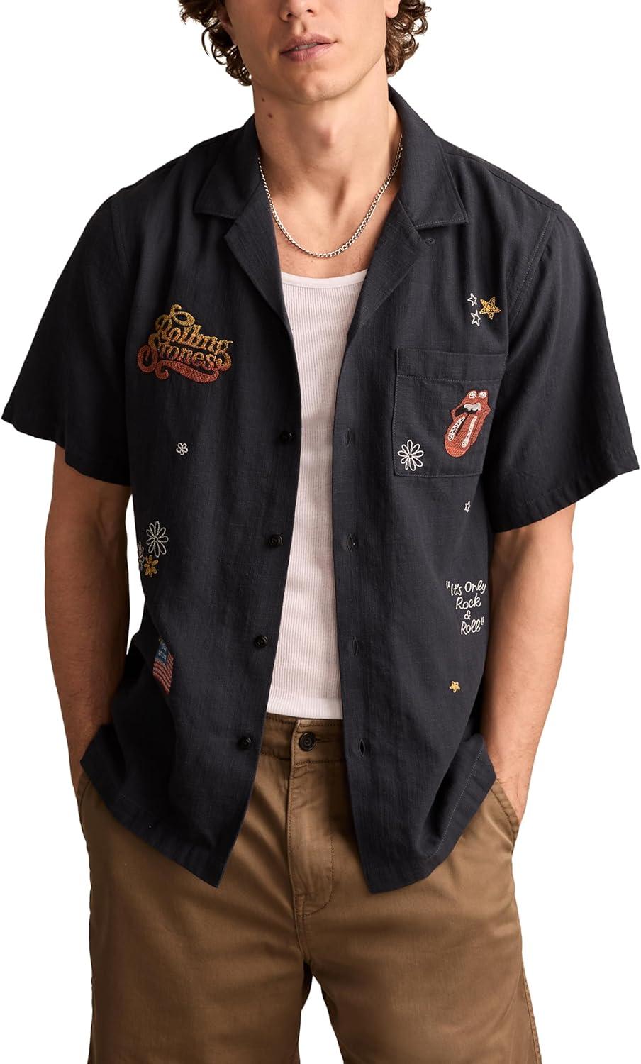 Switch up your style with the Rolling Stones Club Short Sleeve Shirt from Lucky Brand. Cut from soft cotton-twill fabric, this short sleeve shirt is designed with a camp collar, button front and patch chest pocket. With rad Rolling Stones patches at the front and back, this shirt is a go-to pick for any day of the week.