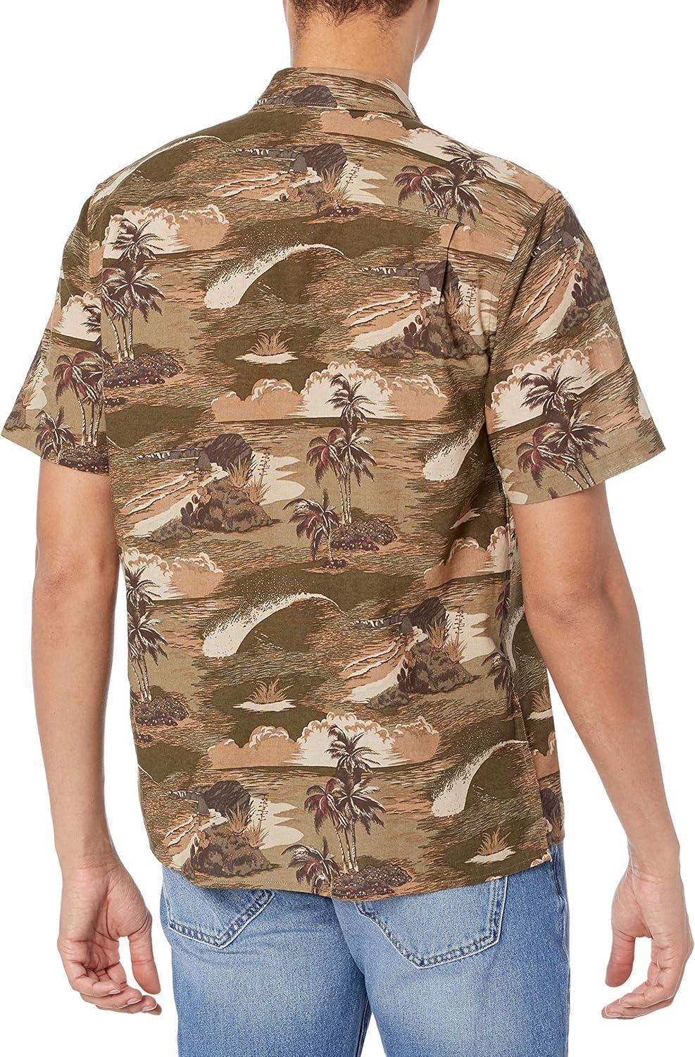 Lucky Brand Men’s Short Sleeve Button Up Club Collar Shirt(Green Print)