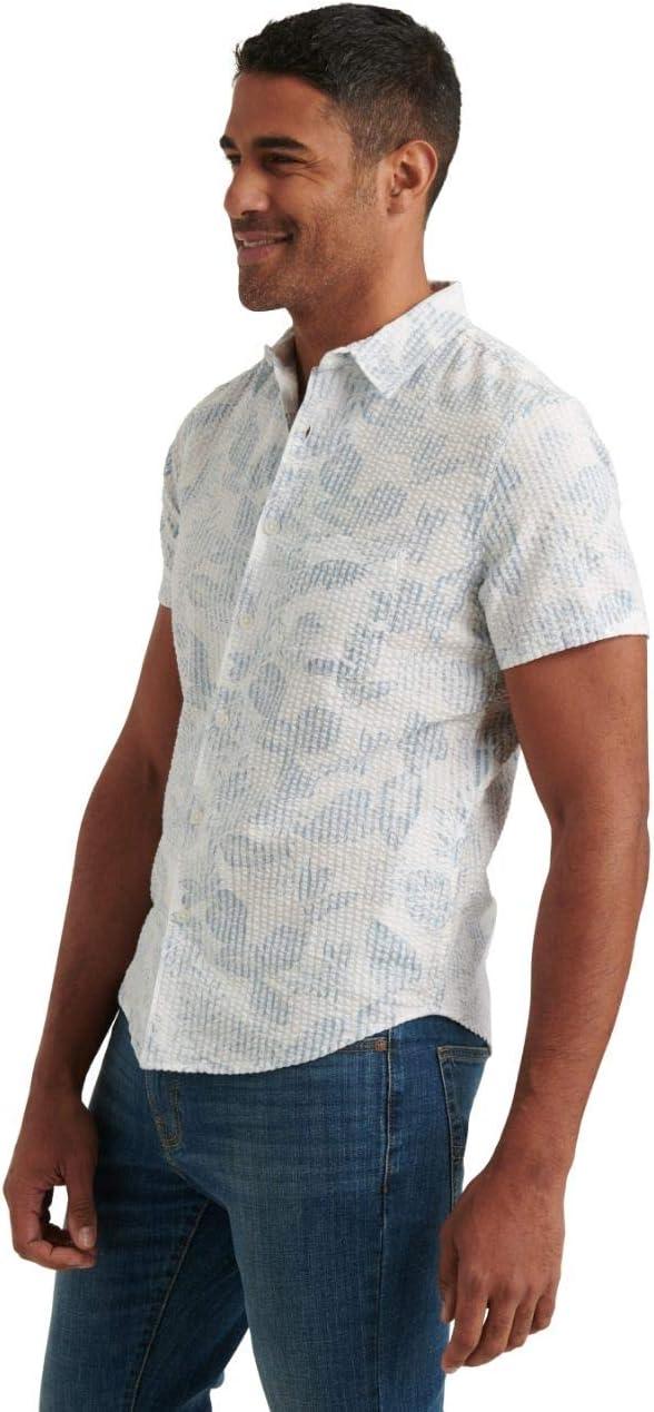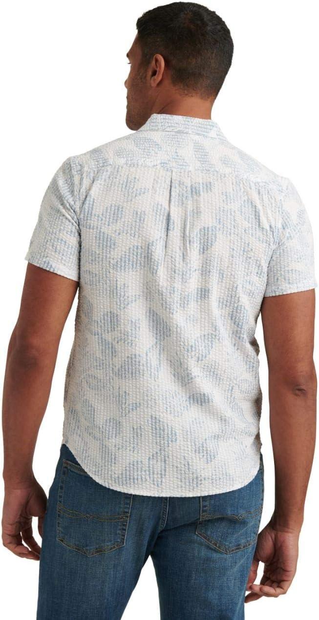 Lucky Brand Mens Short Sleeve Button Up One Pocket San Gabriel Shirt(Blue Print)