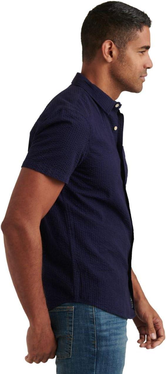 Lucky Brand Men’s Short Sleeve Button Up One Pocket San Gabriel Shirt(Evening Blue)