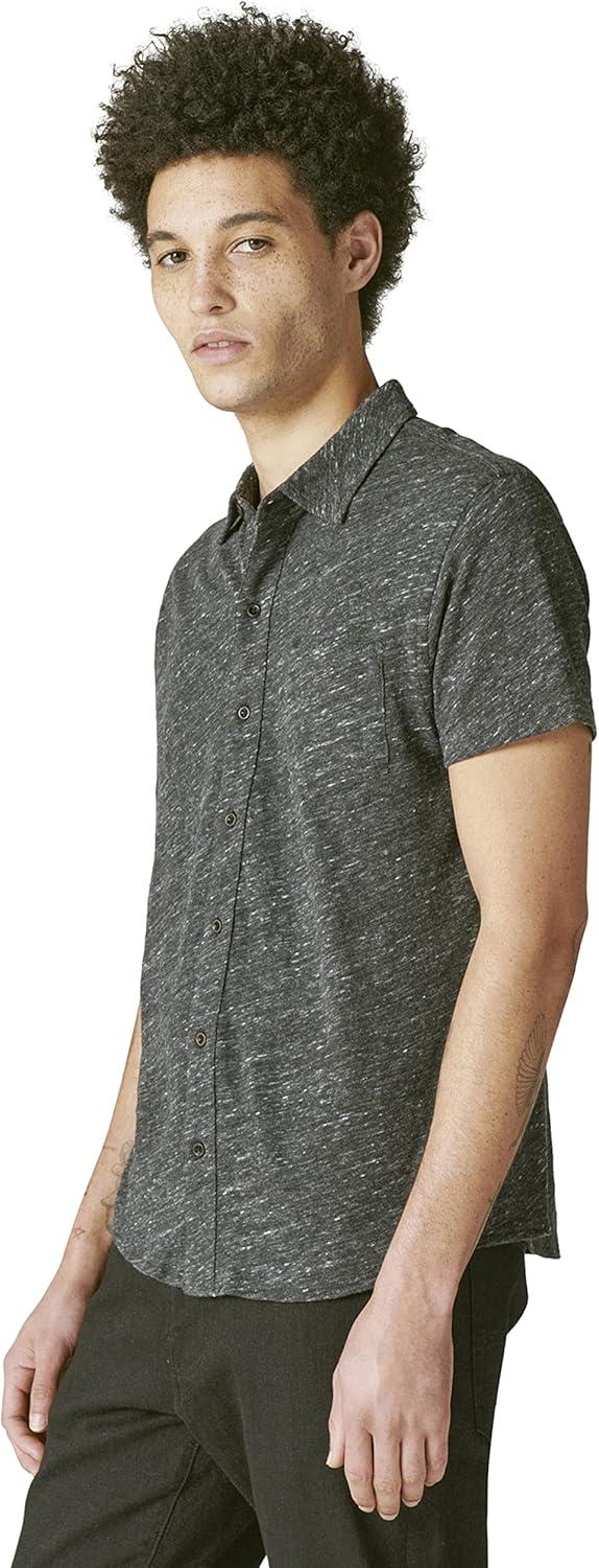 Lucky Brand Men's Short Sleeve Linen Button Up Shirt(Black)