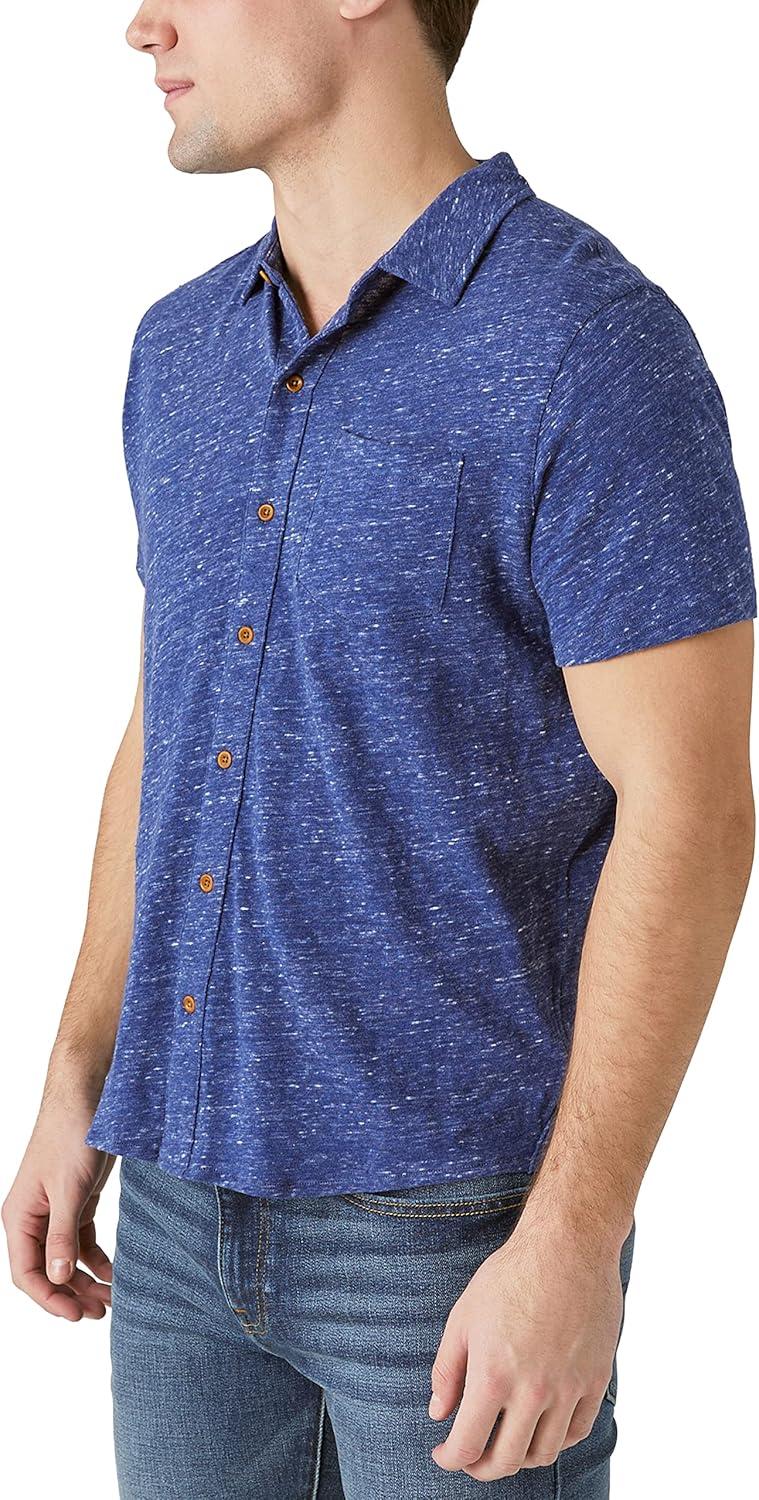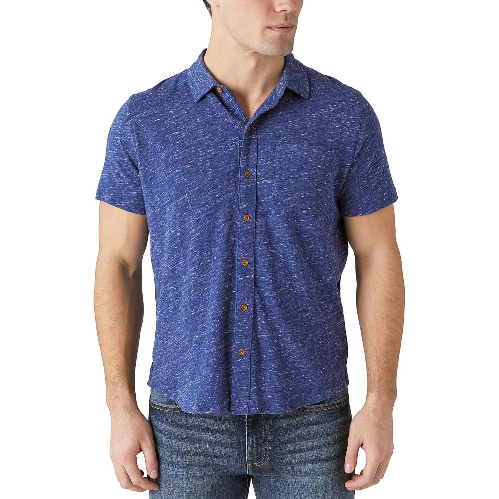 Lucky Brand Men’s Short Sleeve Linen Button Up Shirt(Blue Depths)
