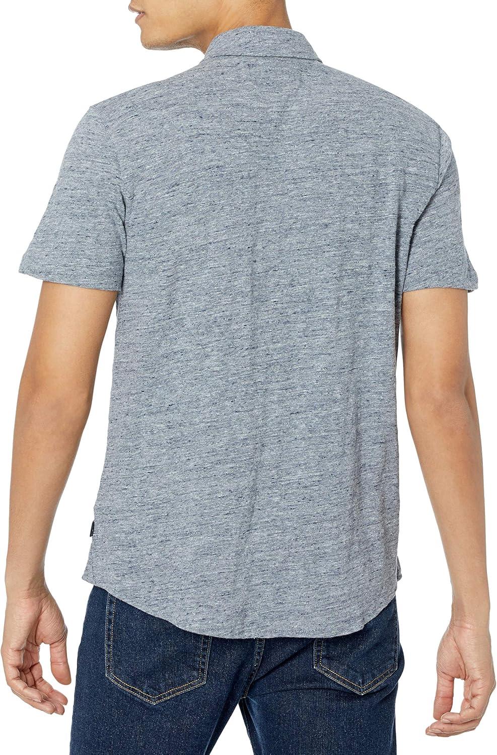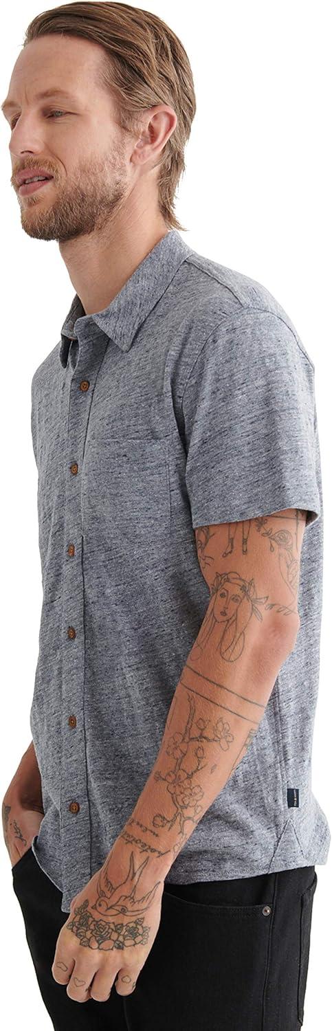 Lucky Brand Mens Short Sleeve Linen Button Up Shirt(Heather Grey1)