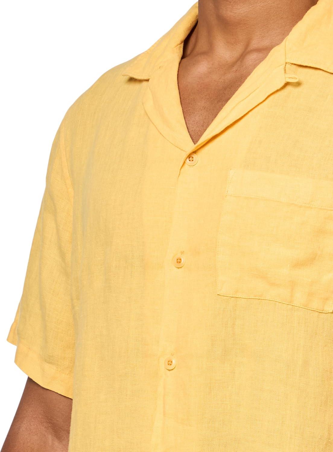 Keep your look effortlessly cool and casual with the Short Sleeve Linen Camp Collar Shirt from Lucky Brand. Woven of lightweight linen that naturally helps keep you feeling cool and comfortable, this short sleeve button up shirt has a camp collar and patch chest pocket, making it your go-to style for everyday wear.