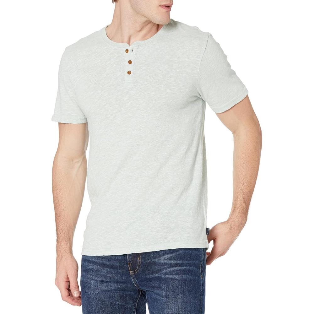 Lucky Brand Mens Short Sleeve Linen Henley Shirt(Surf Spray)
