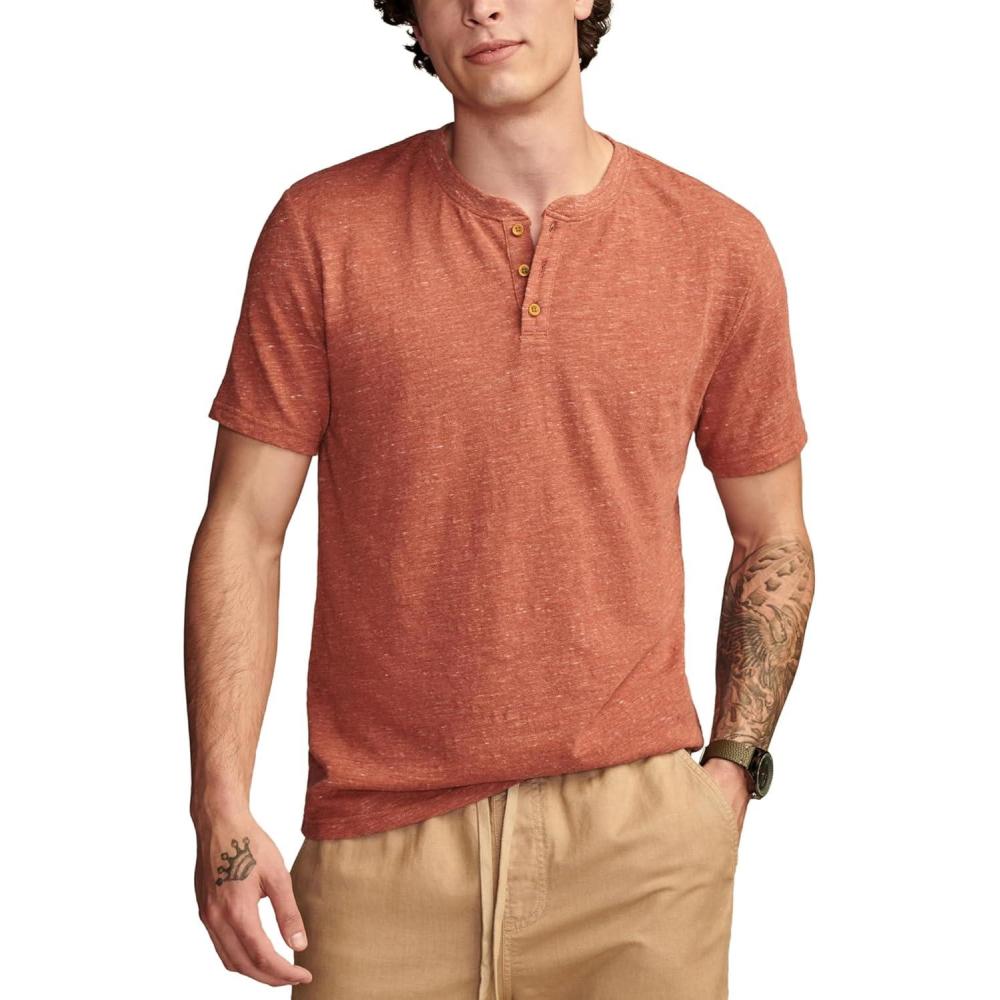Lucky Brand Men’s Short Sleeve Linen Henley(Burnt Henna)