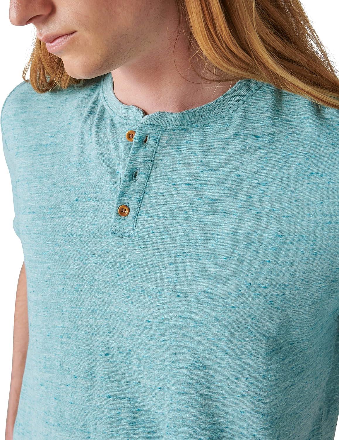 Lucky Brand Men’s Short Sleeve Linen Henley(Heather Grey)