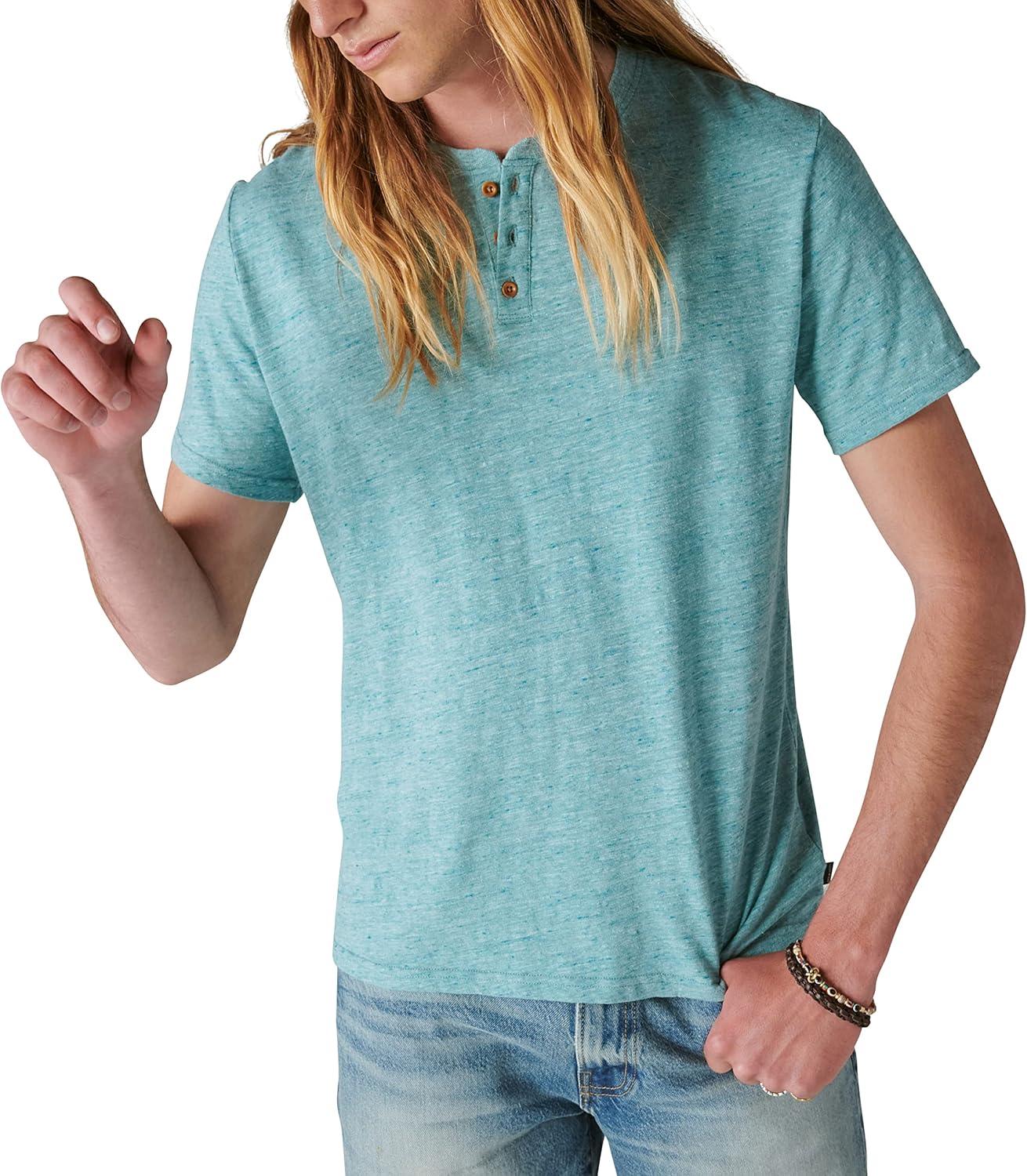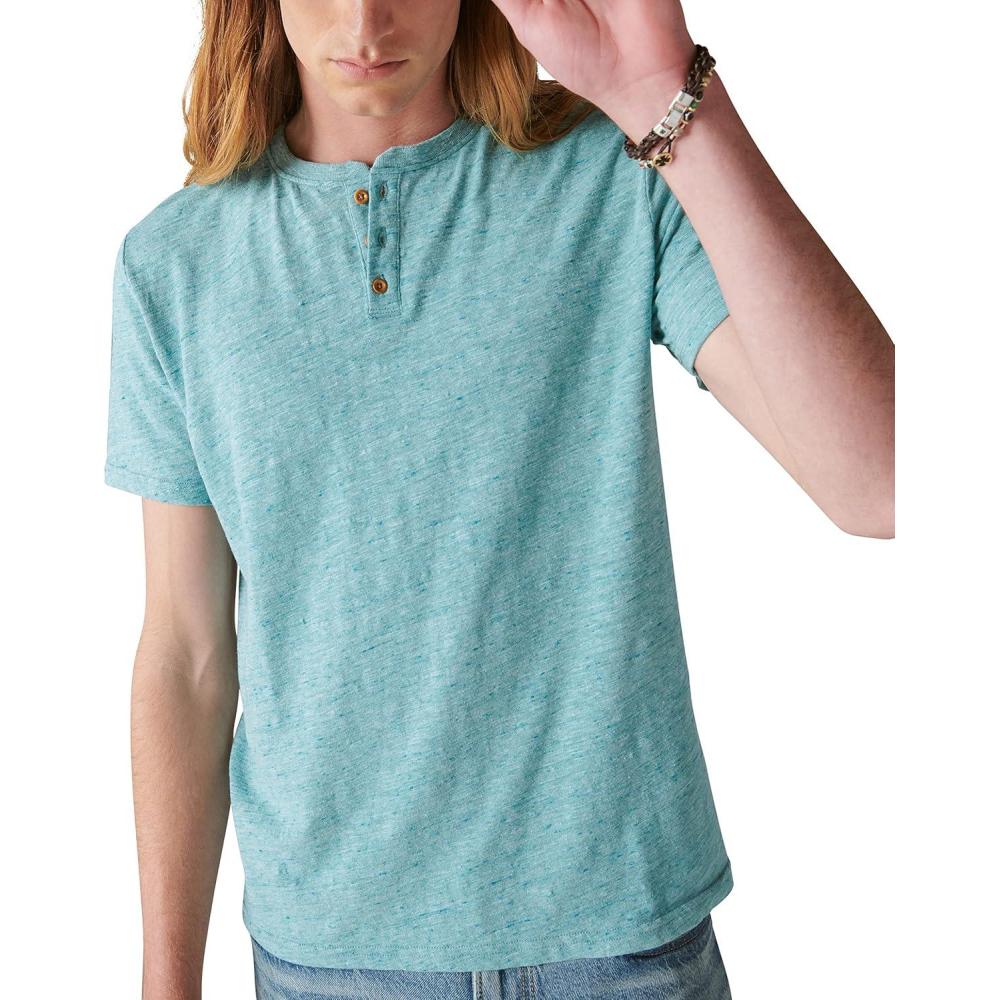 Lucky Brand Men’s Short Sleeve Linen Henley(Harbor Blue)