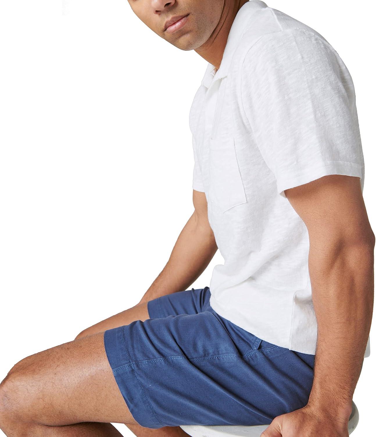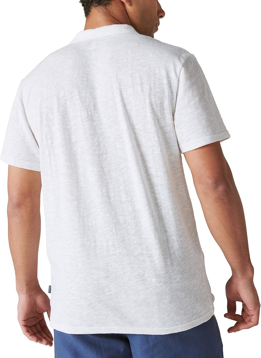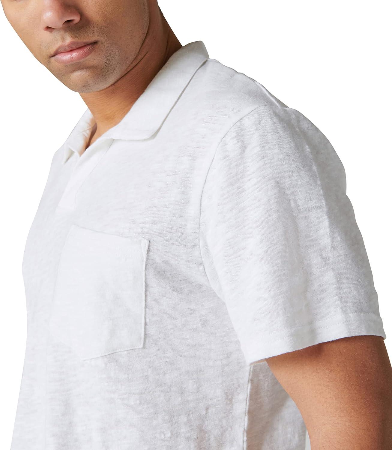 Lucky Brand Men’s Short Sleeve Linen Johnny Collar Polo(Bright White)