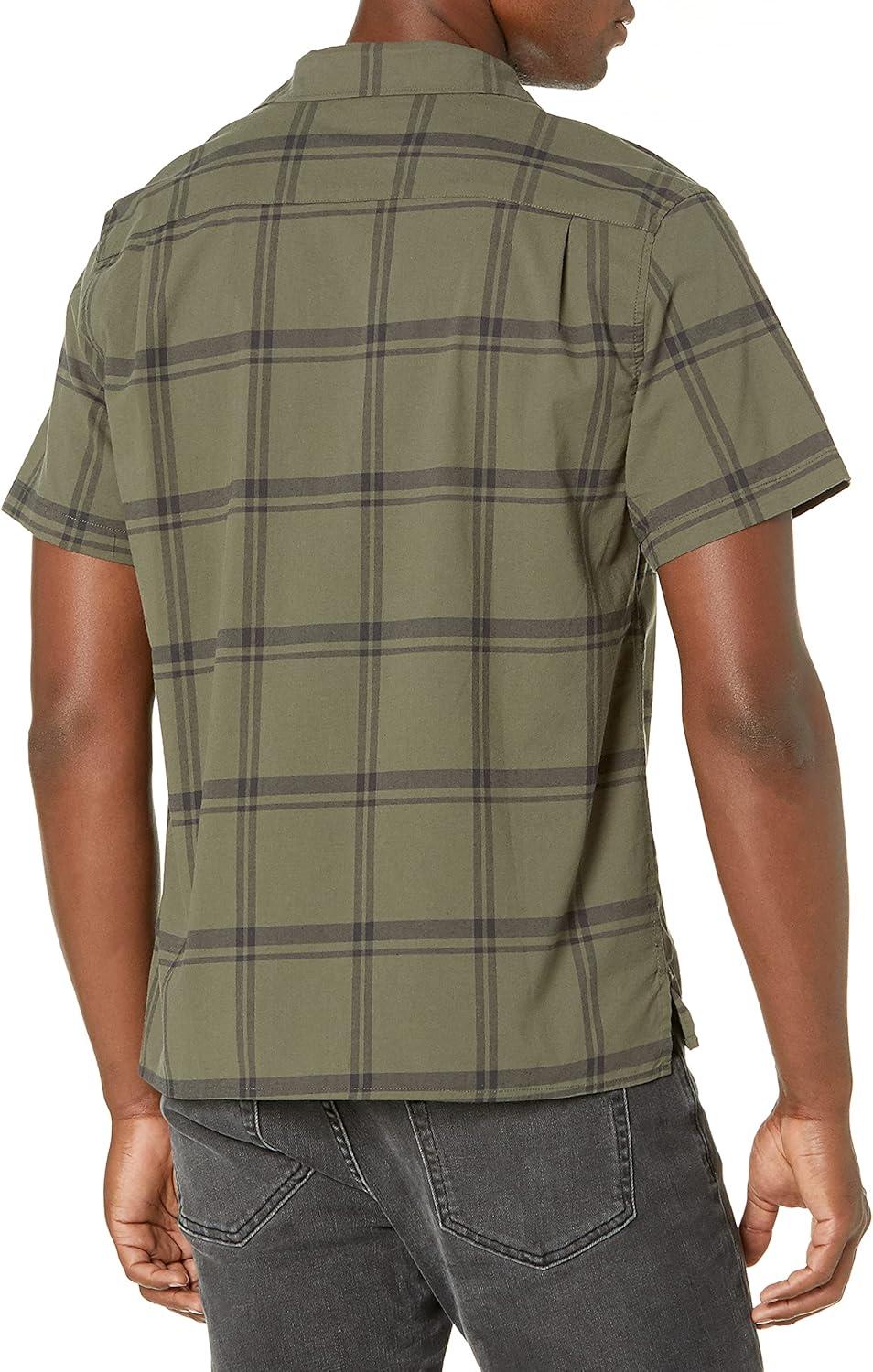 Lucky Brand Mens Short Sleeve Plaid Button Up Auto Shirt(Olive Plaid)