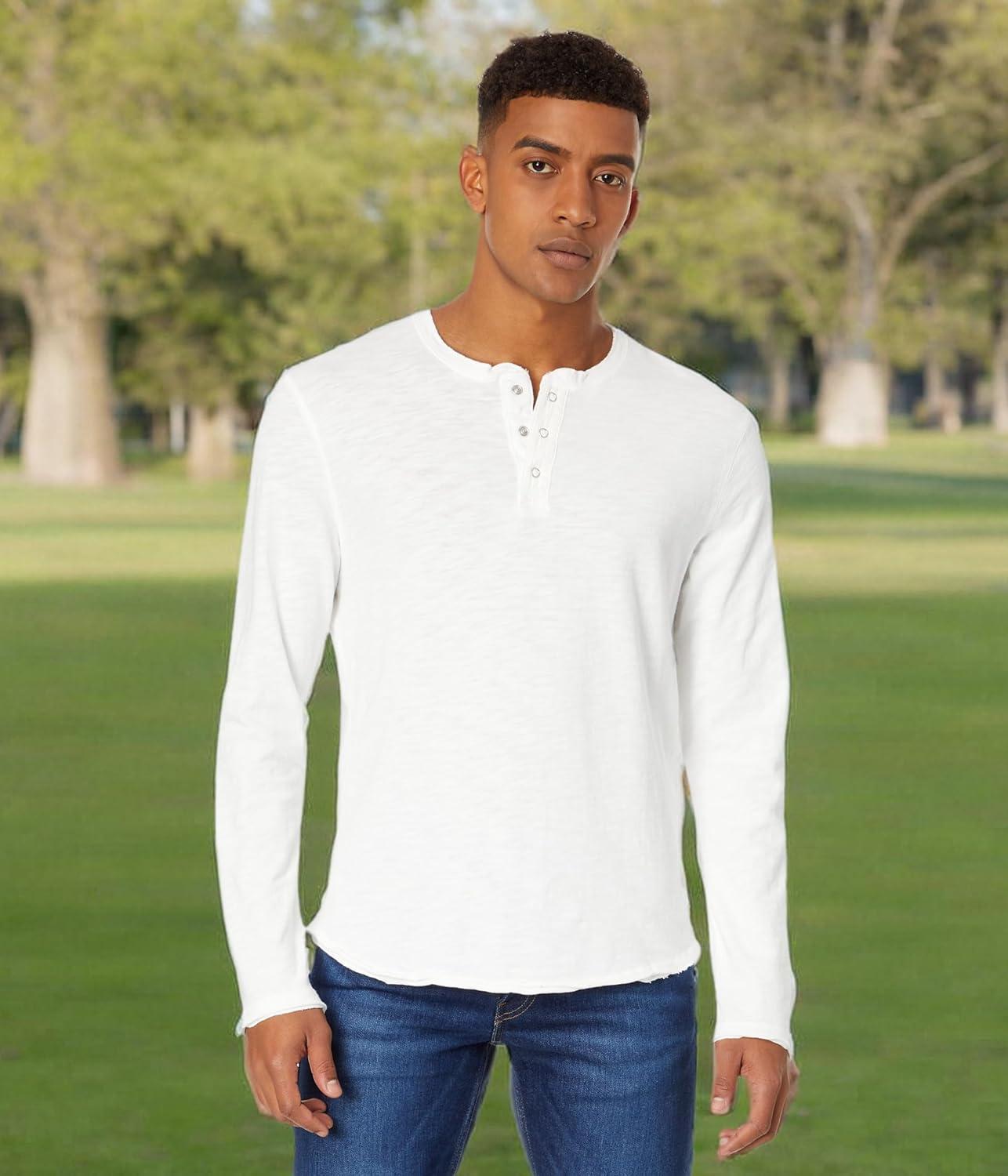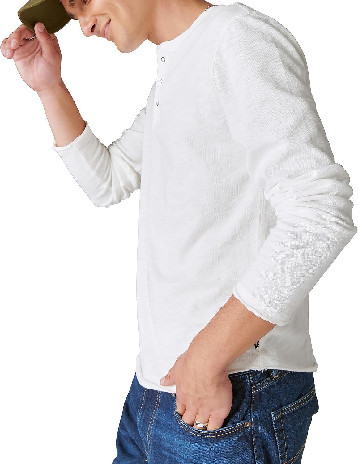 Lucky Brand Men’s Weekend Slub Jersey Long Sleeve Henley(Bright White)