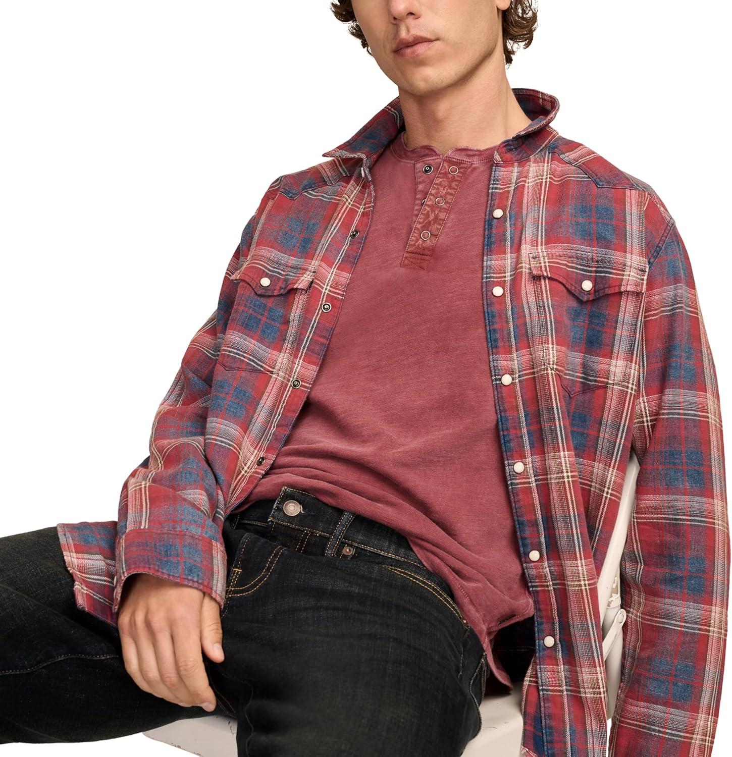 Lucky Brand Mens Weekend Slub Jersey Long Sleeve Henley(Cabernet)