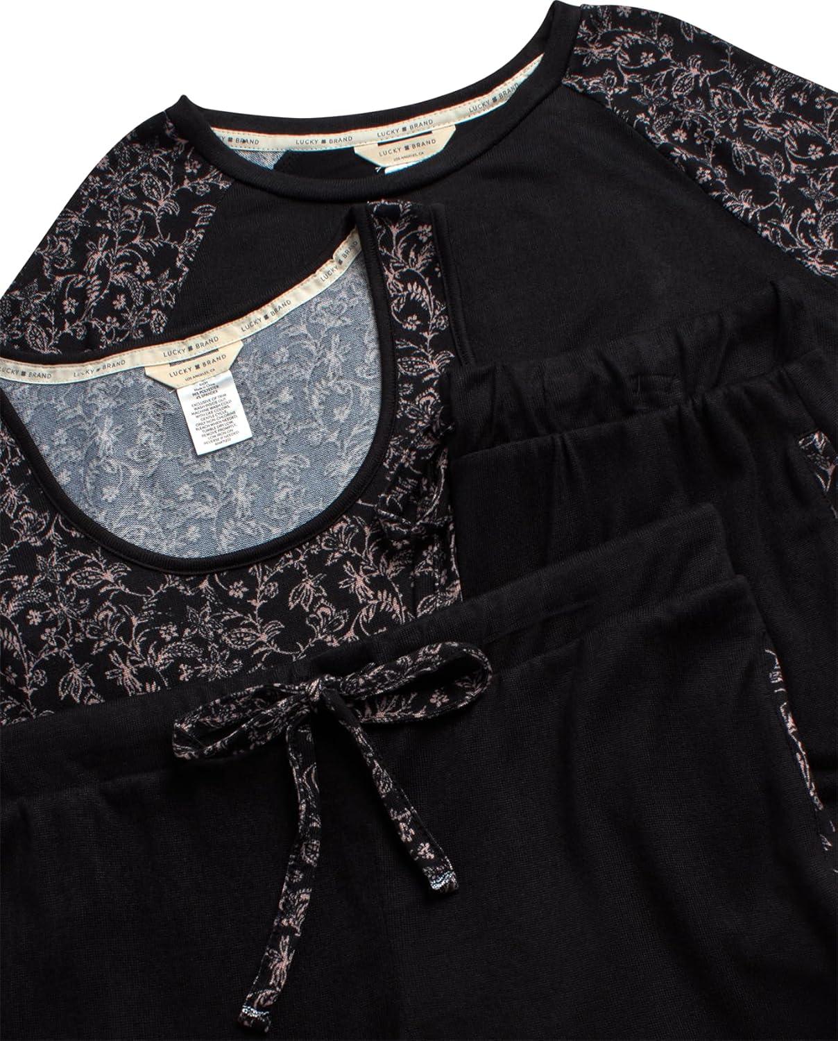 Lucky Brand Pajamas Set for Women 4-Piece Soft Sleepwear – Top, Tank, Shorts & Pants, Comfy Loungewear Pijama para Mujer(Black Bandana)