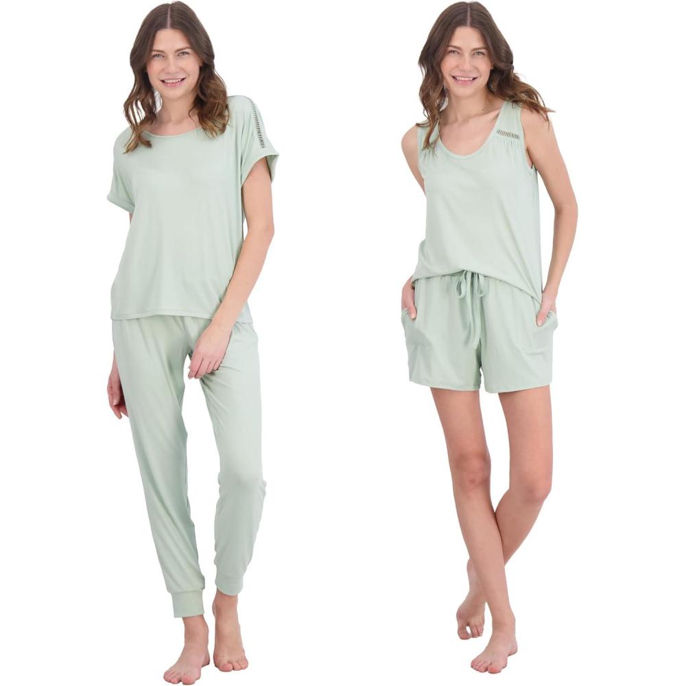 imageLucky Brand Pajamas Set for Women 4Piece Soft Sleepwear  Top Tank Shorts ampamp Pants Comfy Loungewear Pijama para MujerSoft Sage