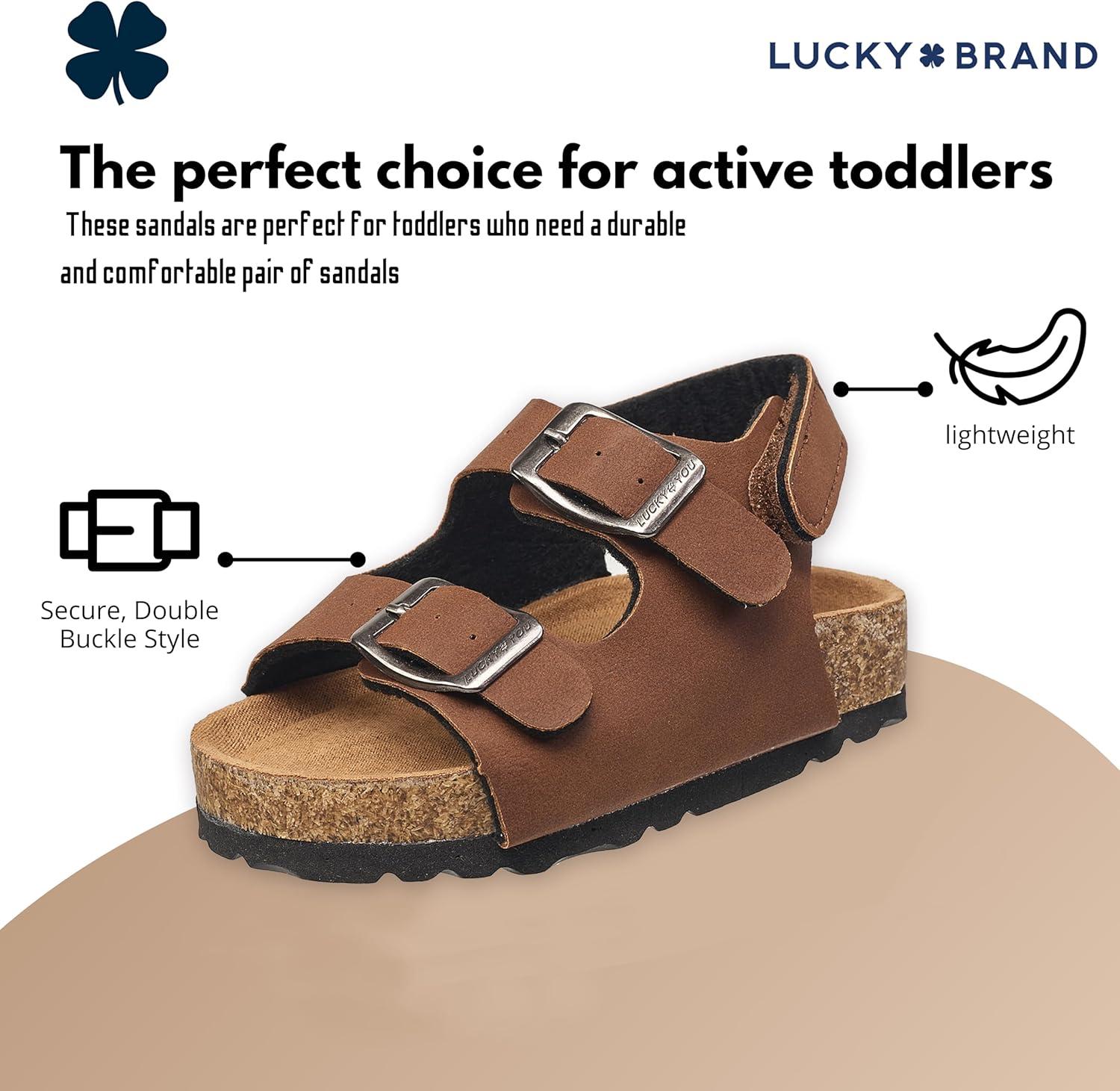 imageLucky Brand Toddler Unisex Baby Boy Blanc Double Strap Casual Toddlers Sandals with Hook and Loop Closure ToddlersBrown