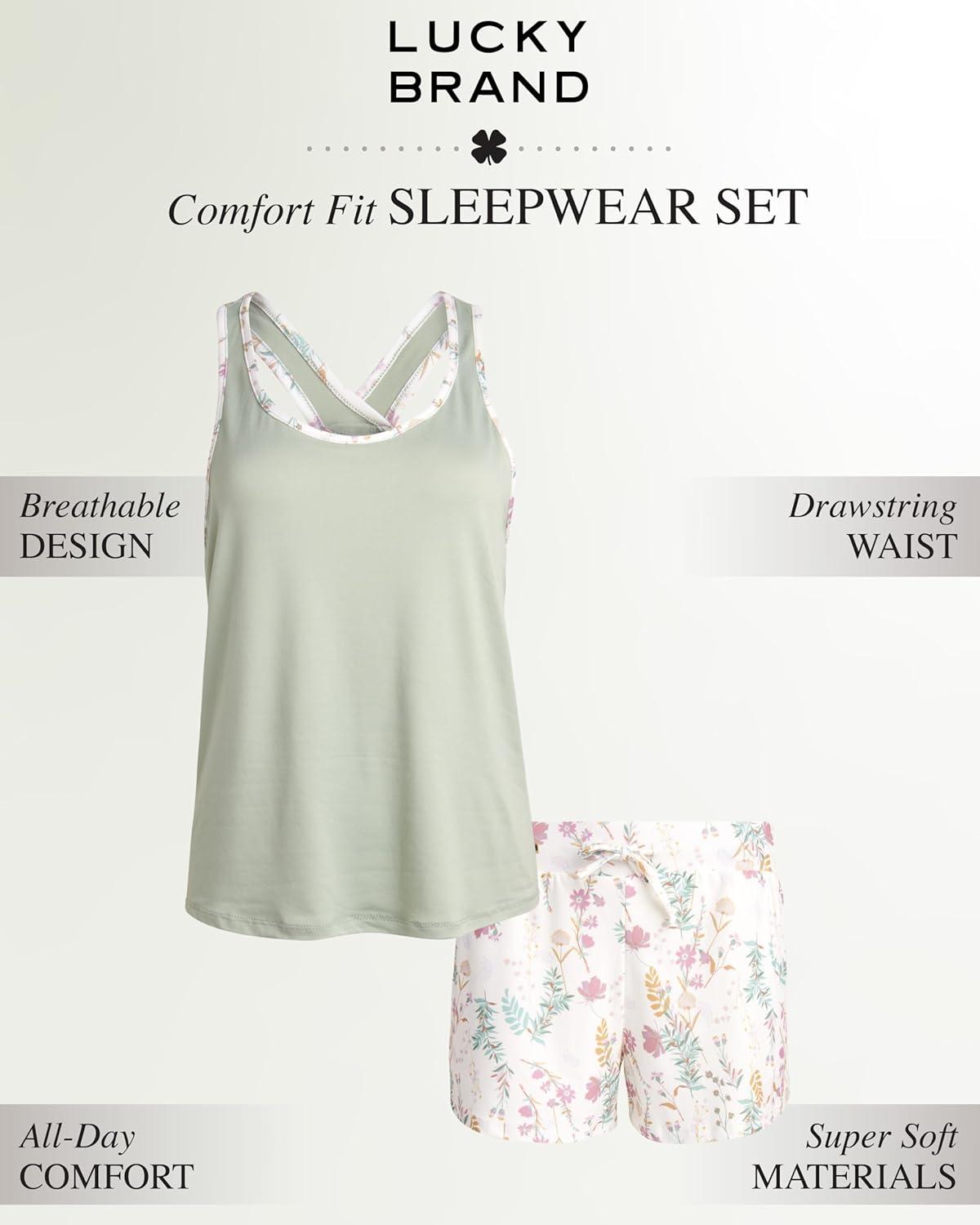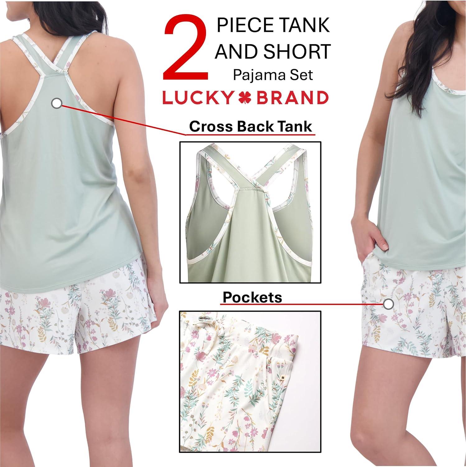 Lucky Brand Womens 2 Piece Lounge Set, Lightweight Soft Pajamas Sleepwear Crossback Tank Top and Sleep Shorts(Camo Green/Botanical Beauty)