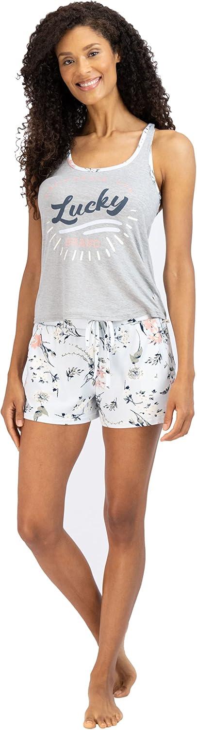 Lucky Brand Womens 2 Piece Lounge Set, Lightweight Soft Pajamas Sleepwear Crossback Tank Top and Sleep Shorts(Grey/Nanette Floral)