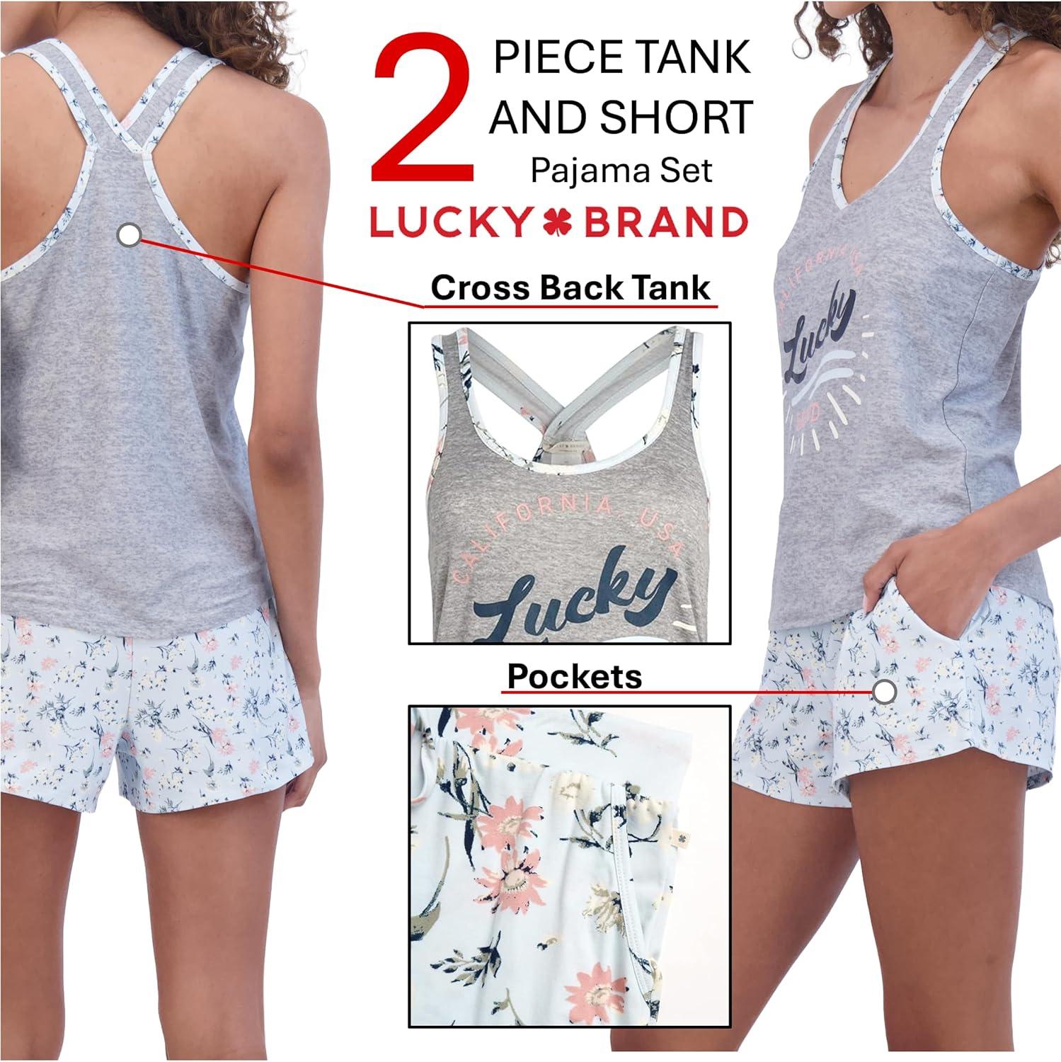 Lucky Brand Womens 2 Piece Lounge Set, Lightweight Soft Pajamas Sleepwear Crossback Tank Top and Sleep Shorts(Grey)