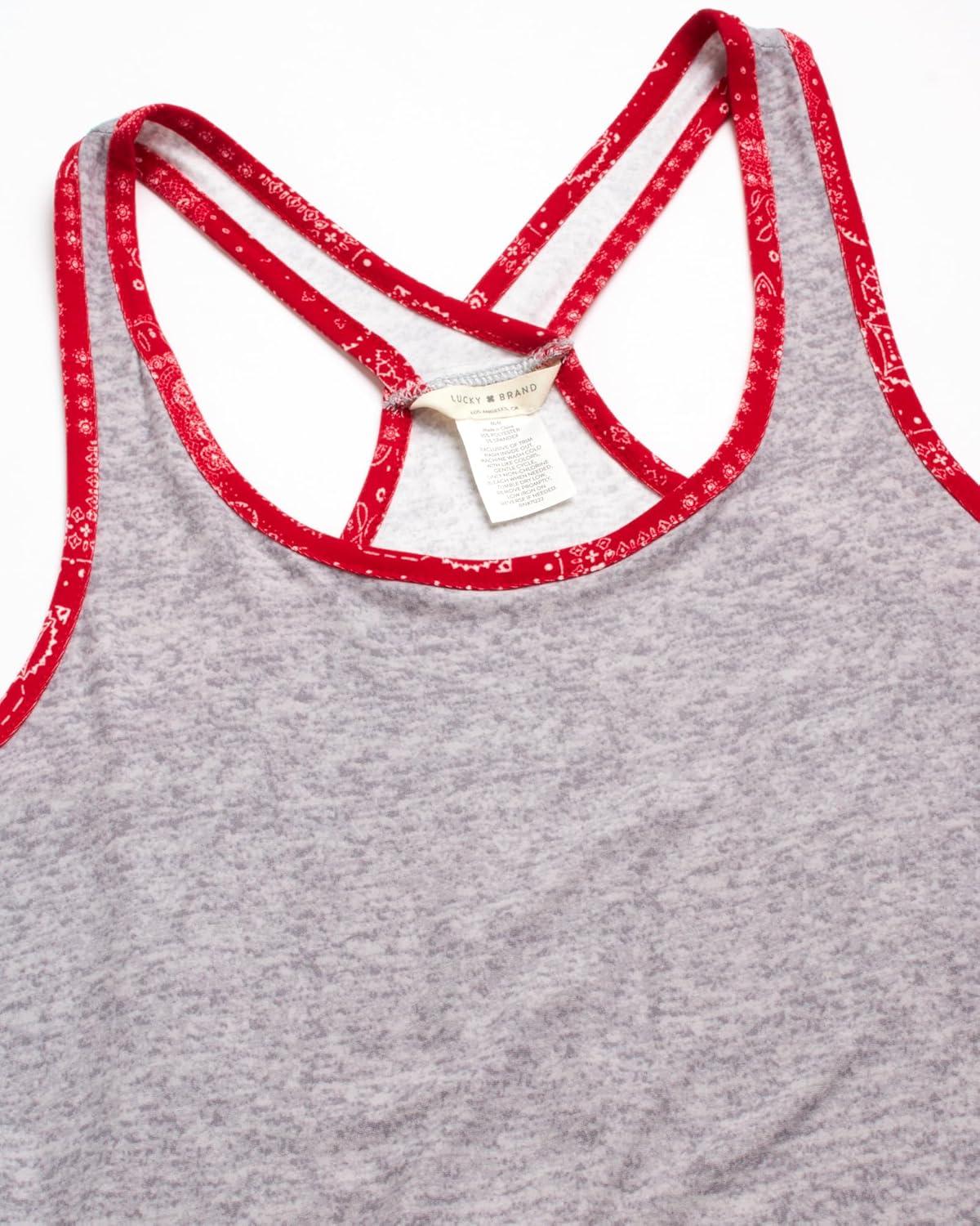 Lucky Brand Womens 2 Piece Lounge Set, Lightweight Soft Pajamas Sleepwear Crossback Tank Top and Sleep Shorts(Heather Grey/Bandana Patchwork)