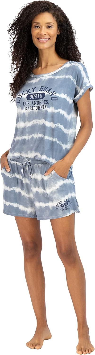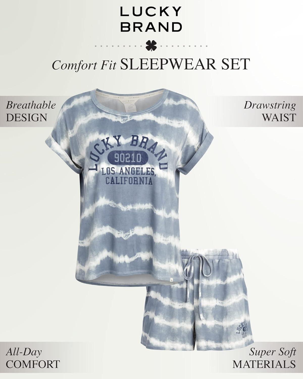 Relax in effortless comfort with the Lucky Brand Women’s 2-Piece Pajama Set, a cozy essential designed for lounging and sleeping. This soft, lightweight set includes a roll-sleeve t-shirt and matching shorts made from a smooth blend of 95% polyester and 5% spandex that moves with you through every season. The breathable fabric keeps you cool during summer nights and comfortable in cooler months, making it a go-to choice for year-round wear. Inspired by laid-back California style, this pajama set for women offers an easy fit that’s both flattering and functional. Perfect for relaxing at home, unwinding after a long day, or gifting for birthdays, holidays, or self-care moments, these pajamas deliver effortless style and comfort. Ideal for women who love cute lounge sets, cozy fall pajamas, or lightweight sleepwear essentials, this set makes every night feel like a soft retreat.