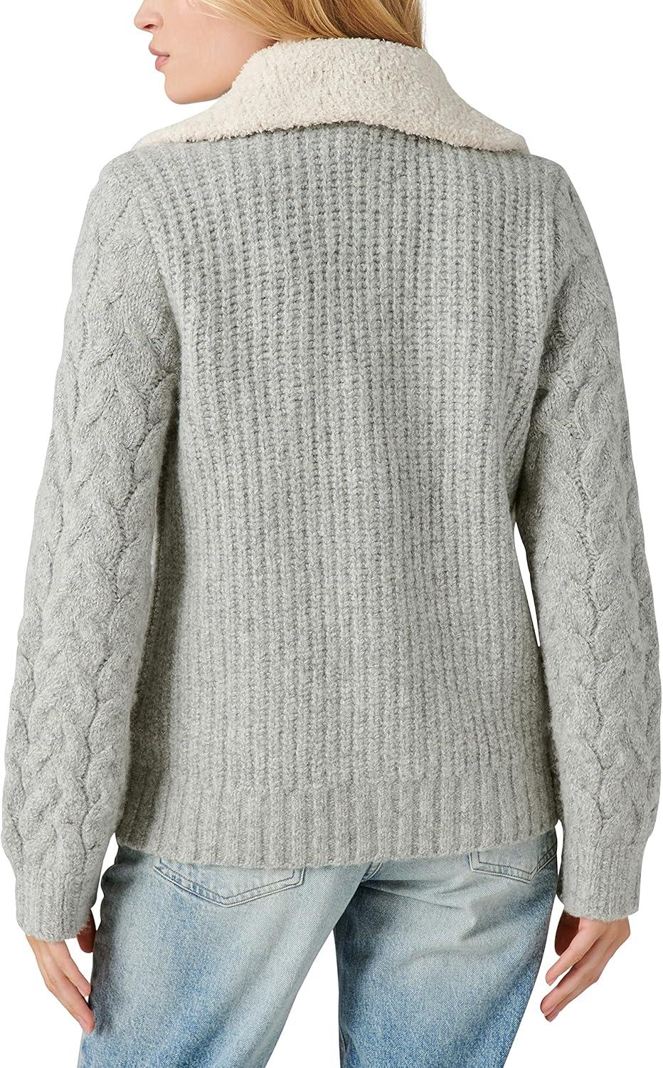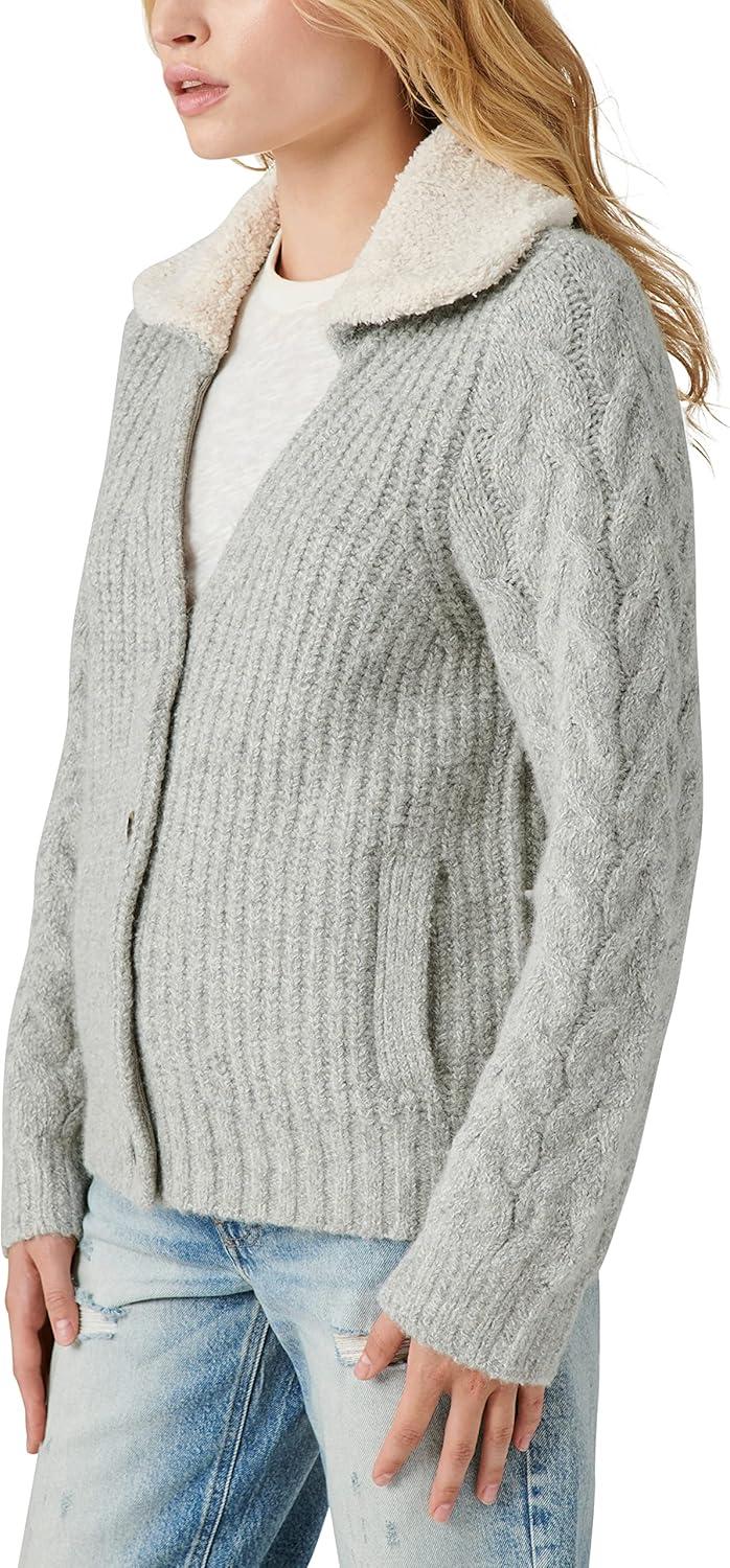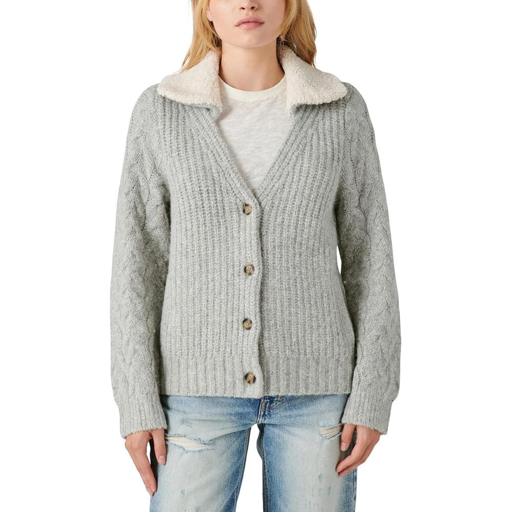 Lucky Brand Women’s Cable Collared Cardigan(Light Heather Grey)