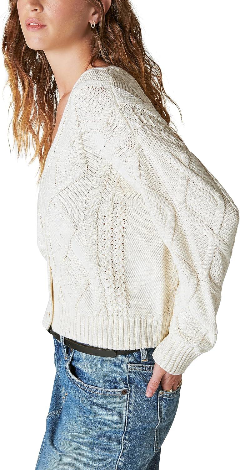 Lucky Brand Women's Cable Stitch Cardigan(Cream)