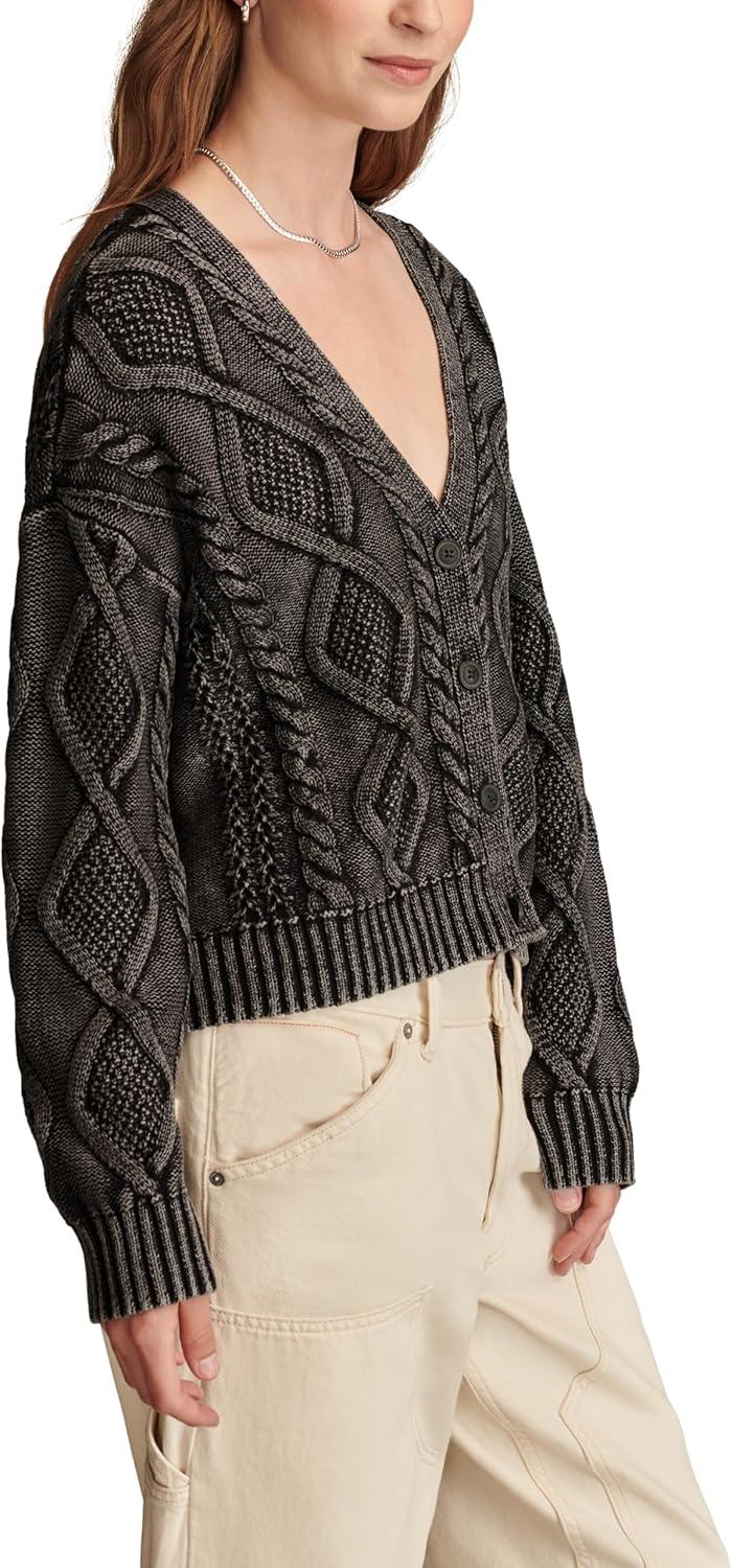 An effortlessly cool and cozy cardi perfect for throwing on when there’s a chill in the air. Soft and comfy in cotton, it has a vintage-like washed effect, classic cable-knit design and elevated ribbed details.