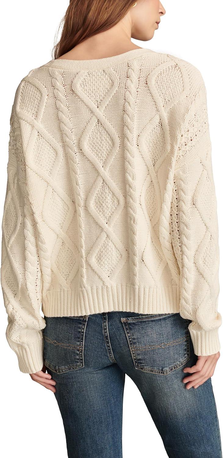 Lucky Brand Womens Cable Stitch Long Sleeve Cardi(Tofu)