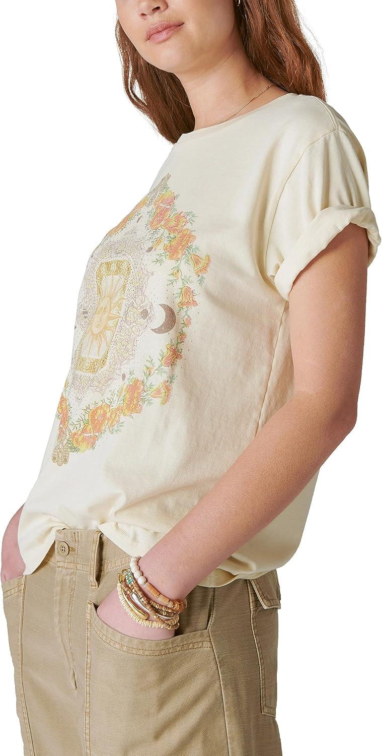 Keep your look effortlessly casual and cool with the Classic Celestial Boyfriend Tee from Lucky Brand. Cut for a roomy, relaxed fit, this t shirt has a comfortable crewneck, short sleeves and a large celestial graphic at the front. The laid back style and soft hand feel of this tee make it a must-have for your wardrobe.