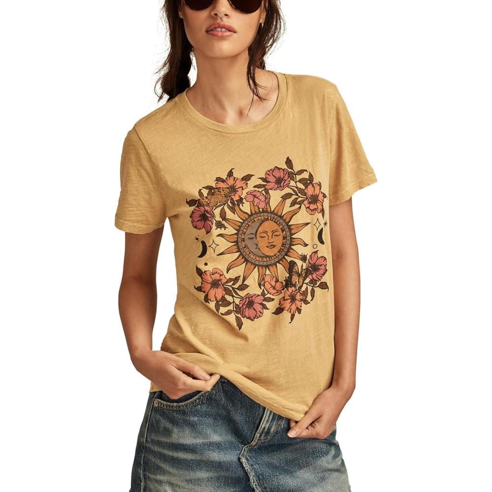 Lucky Brand Womens Classic Crew Neck Tee(Pale Gold)