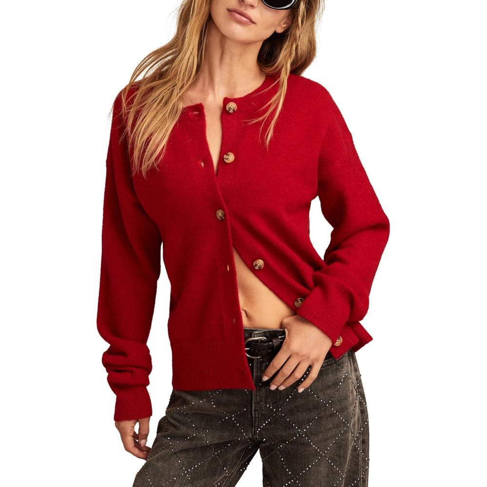 Lucky Brand Womens Cloudsoft Crew Neck Cardigan(Jester Red)