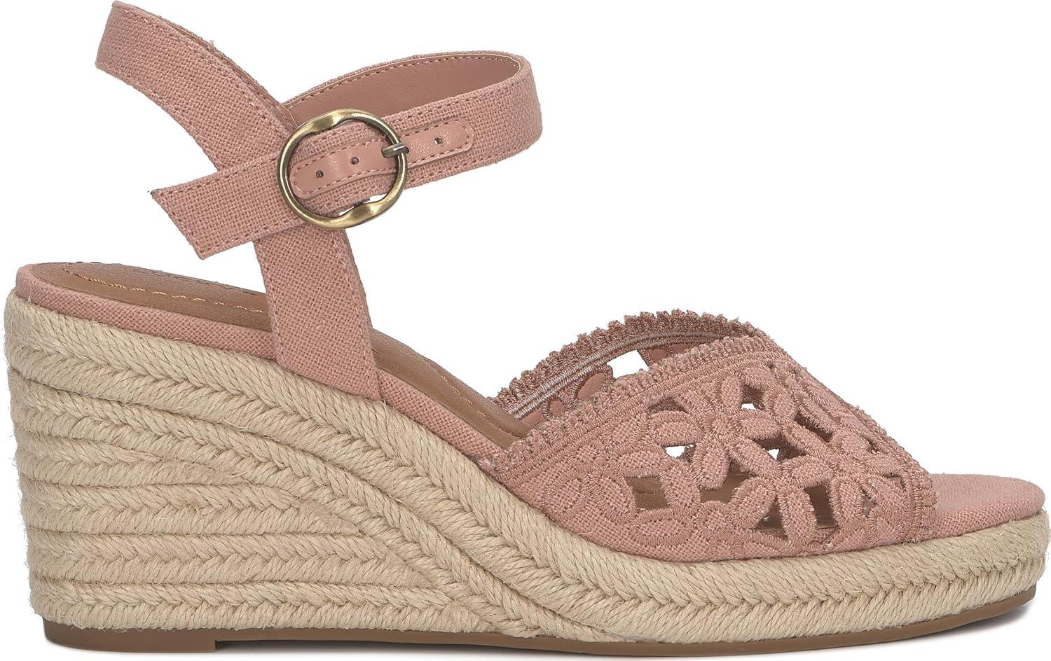 This feminine wedge is perfect for spring and summer. With the perfect amount of lift, buckle closure and laser cut floral upper, your foot will be secure and cute for all day wear!