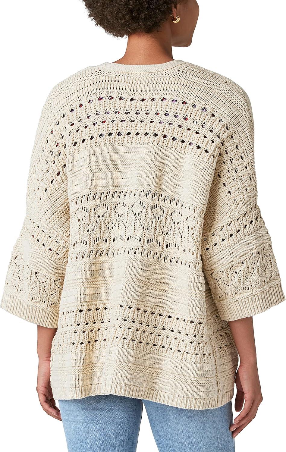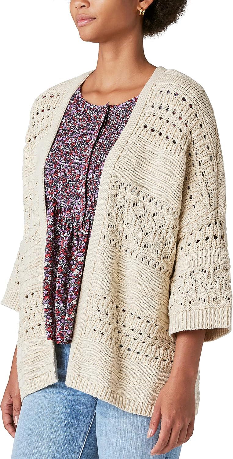 Lucky Brand Women’s Crochet Cardigan(Oyster Grey)