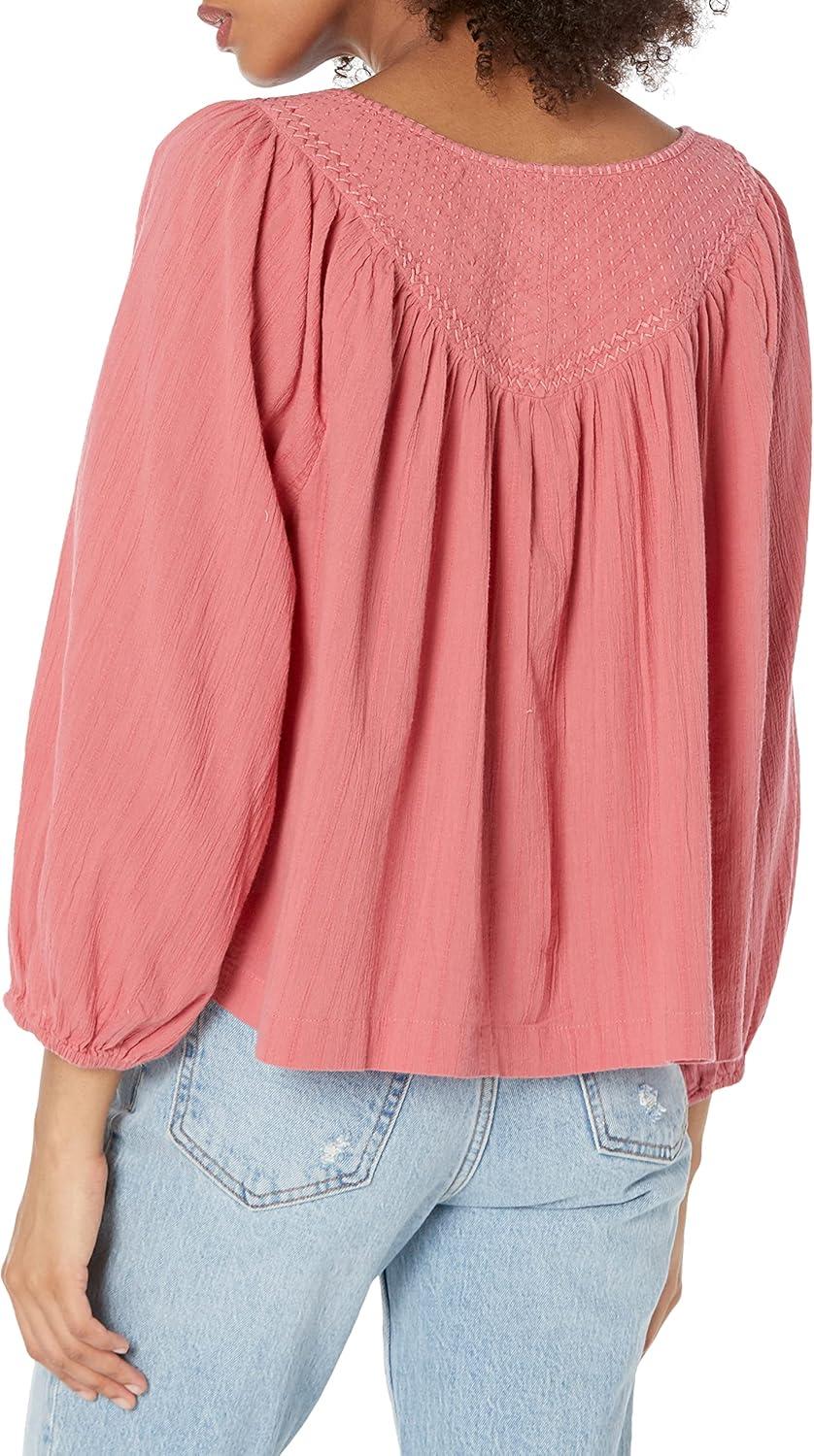 Lucky Brand Women’s Embroidered Peasant Blouse(Baroque Rose)